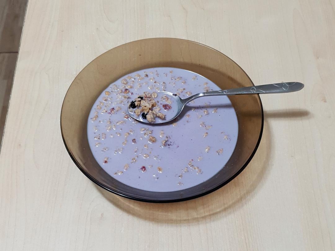 - I'm not typically an oats person, but I received a free sample of "strawberry muesli" from my supermarket. There were maybe 7-8 strawberry halves in the box, so I added what I happened to have in the fridge – blueberry jam.