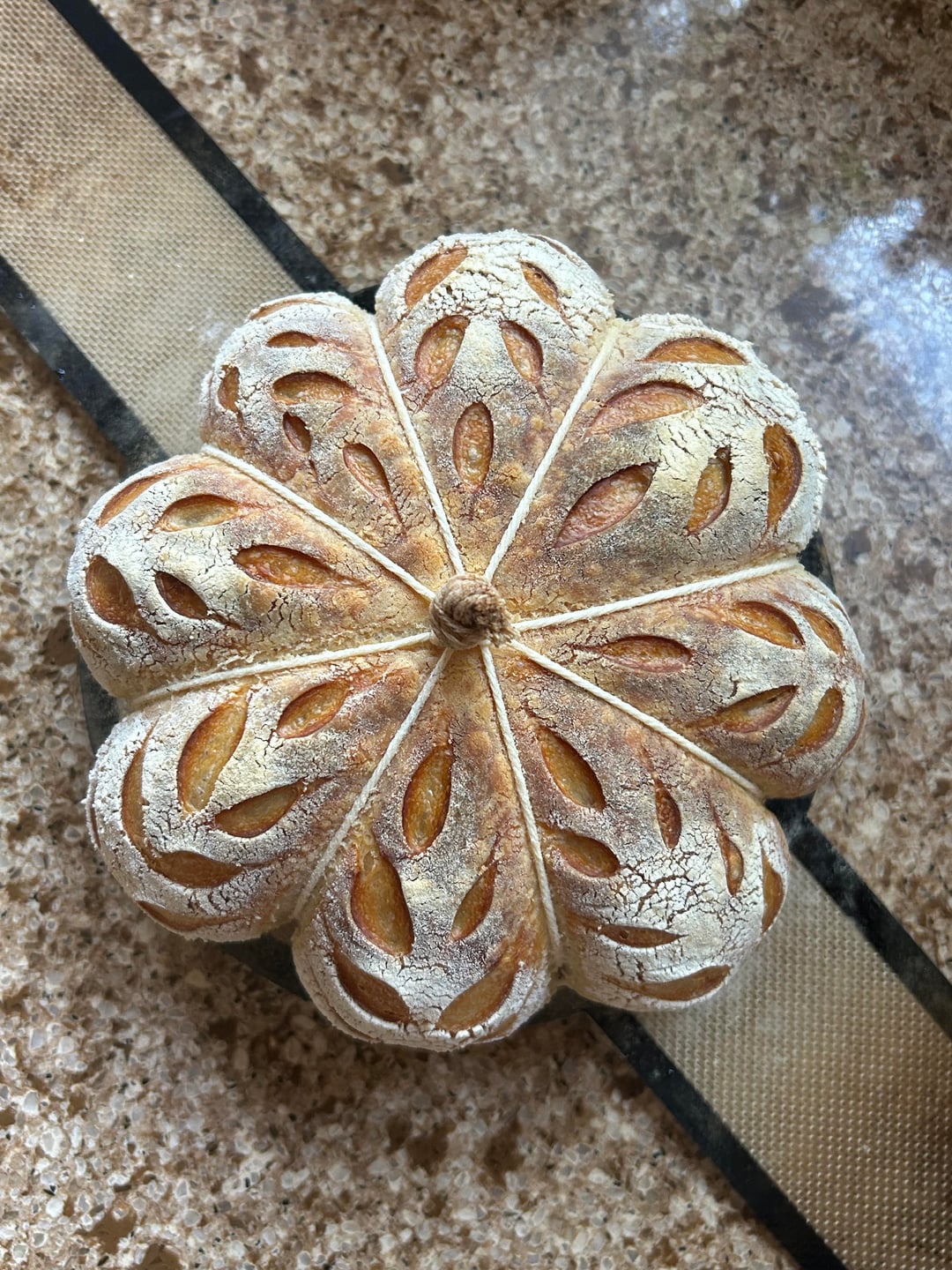 recipe: https://www.tiktok.com/t/ZP8S3j9gn/ design inspo: https://www.tiktok.com/t/ZP8S3A3rk/ by Impressive_Oil_5778 3 Comments AutoModerator 2 months ago **Hello Impressive_Oil_5778,**Thank you for posting. **[Here is the posting prompt](https://imgur.com/a/De6AKiQ)** if you need to read it again. **[RULES LINK](https://www.reddit.com/r/Sourdough/wiki/sourdoughrules/)** :-). This comment appears on **all posts**.**[Modmail us :-)](https://www.reddit.com/message/compose?to=/r/Sourdough)** with questions. # **[READING CRUMB GUIDE ](https://www.reddit.com/r/Sourdough/wiki/reading_crumb/)** # [Wiki index](https://www.reddit.com/r/Sourdough/wiki/index/), & # [FAQ Beginner starter guide](https://www.reddit.com/r/Sourdough/s/gnqFg7osBO)*I am a bot, and this action was performed automatically. Please [contact the moderators of this subreddit](/message/compose/?to=/r/Sourdough) if you have any questions or concerns.* pinkcrystalfairy 2 months ago Looks beautiful 😍 how’s the crumb? herboobslooklikeeggs 2 months ago #%$@ you