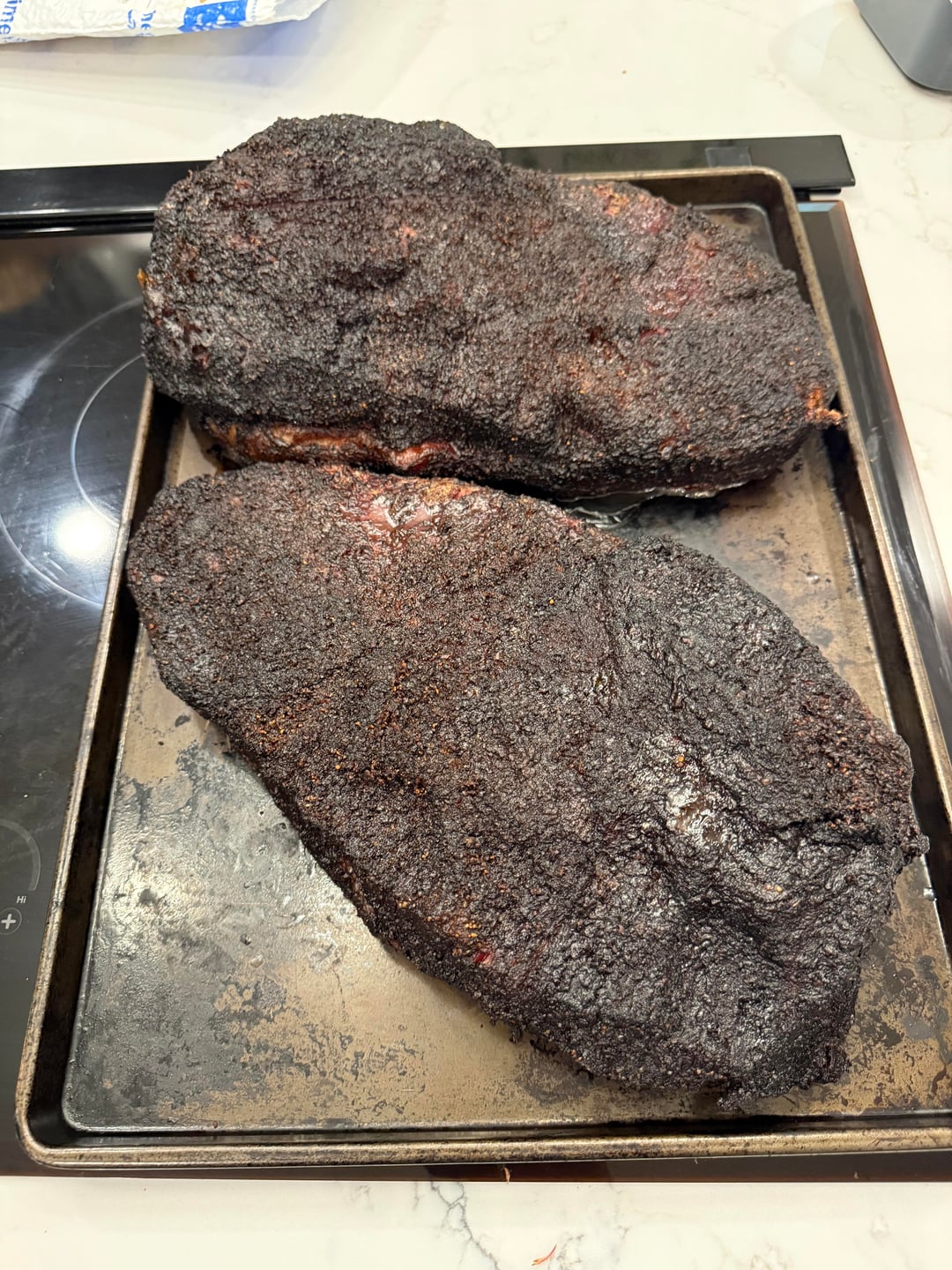 Smoked them yesterday. Cooled in the fridge. Vac sealed 2 hours later. Sous vide bath at 140 for 16 hours. Sliced for a big event this afternoon. Nailed ‘em!!