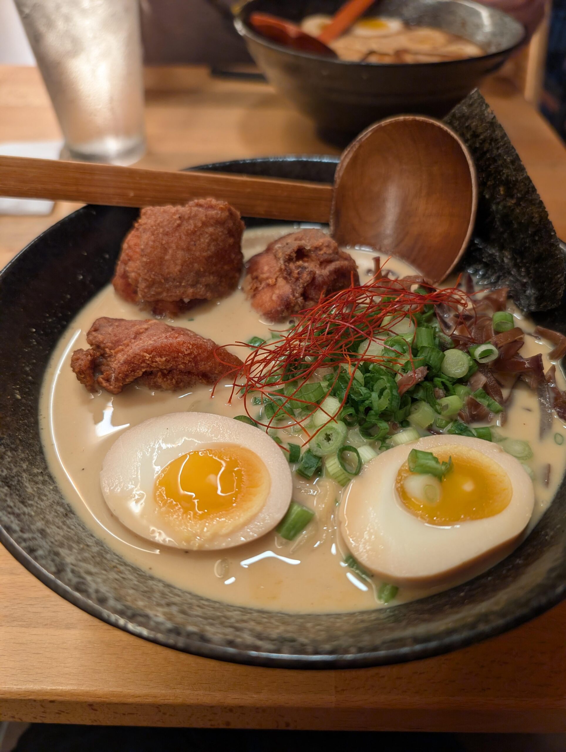 The Karaage curry ramen. My wife was a big fan of this bowl, good spice but not overbearing. Eggs cooked perfectly. Her only complaint was the karaage, the pieces were too big, requiring multiple bites for each piece. Otherwise the taste was quite good. Highly recommended.