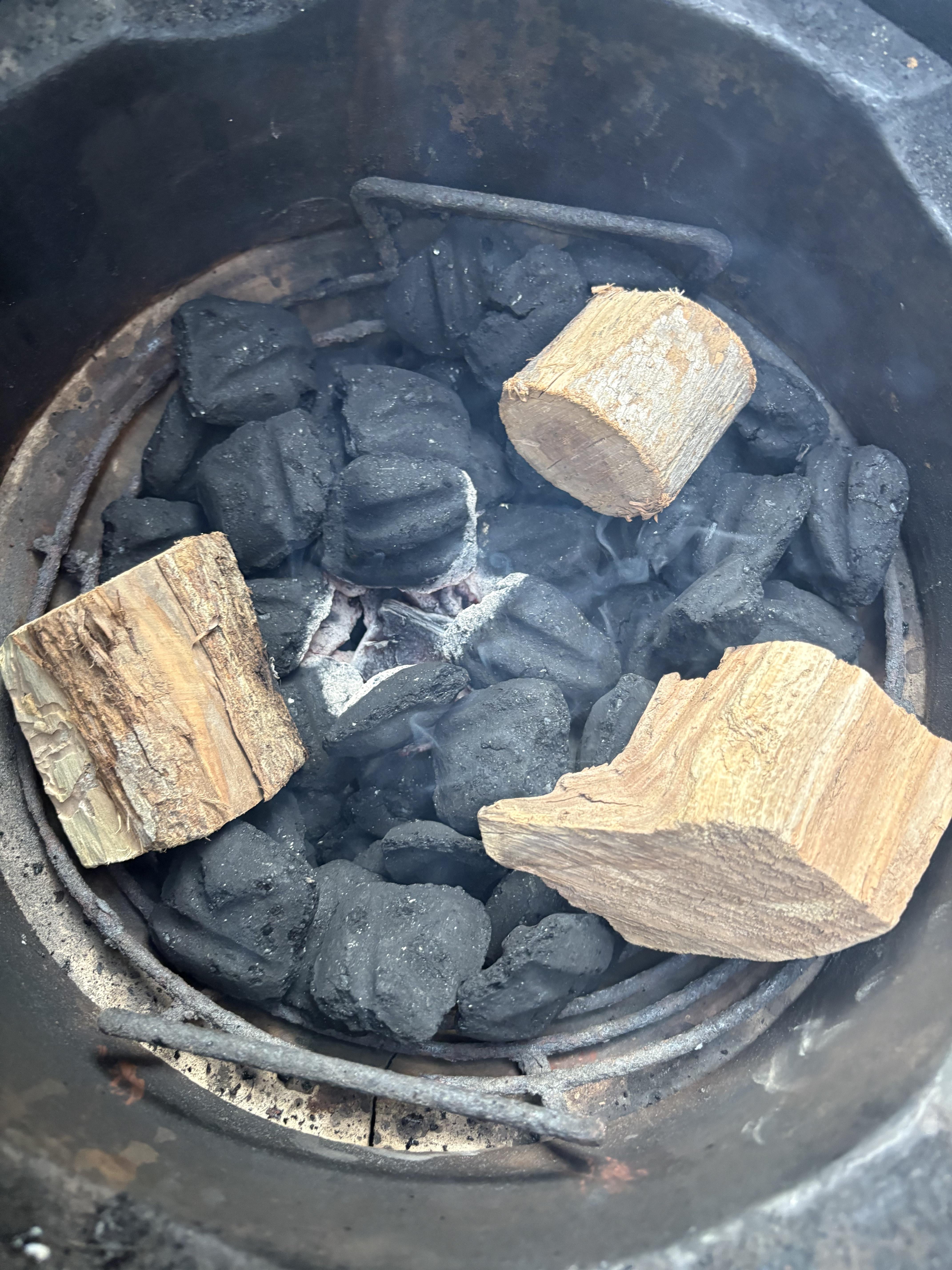 I use a cheap heat gun from Harbor Freight! My FIL actually told me that. We don’t use anything else that could affect the flavor. Ive used briquettes when in a bind but normally I use Cowboy or Jealous Devil Lump charcoal.