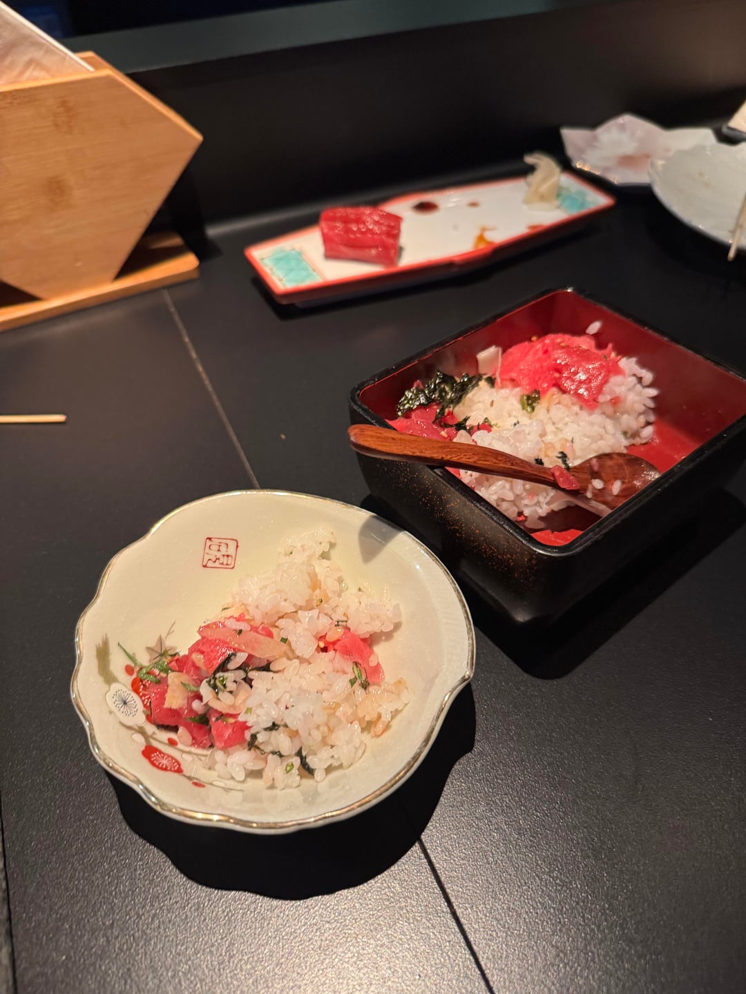 Yakitori, sushi, pork, tuna