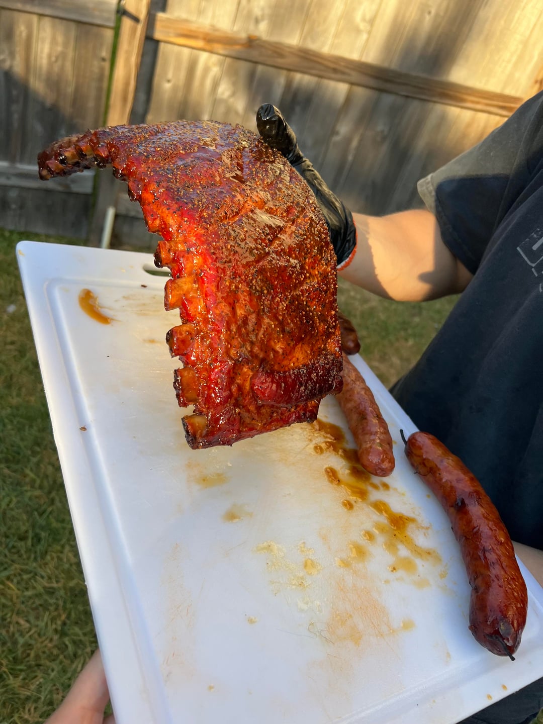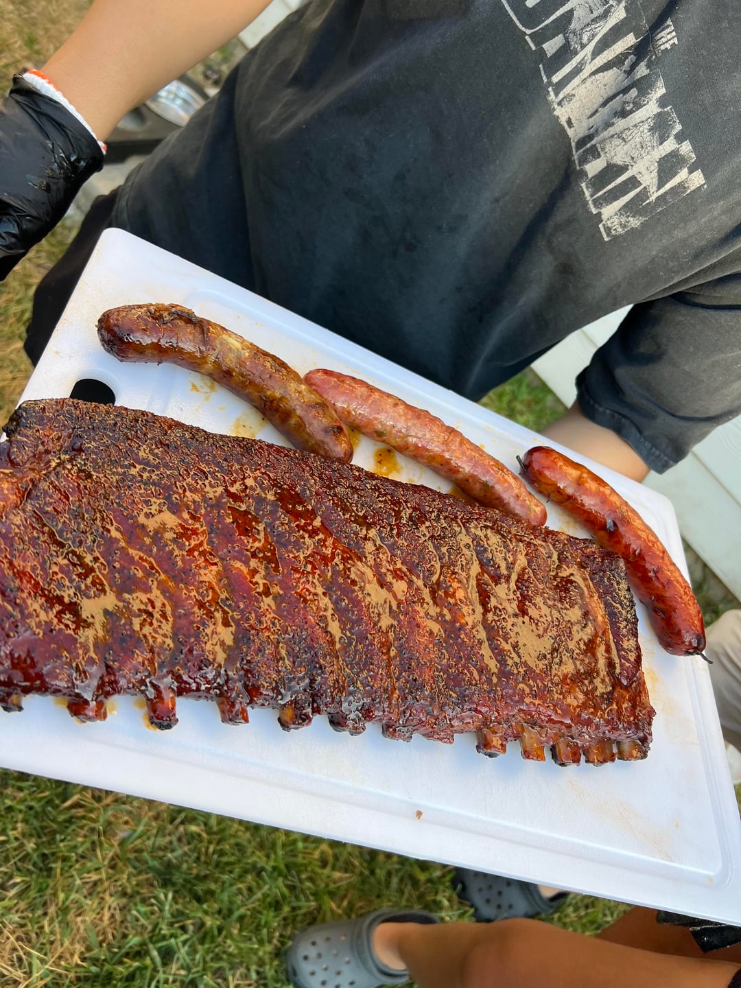 Cooked at 250-300 for around 6 hours. Sausages: Mac n cheese sausage, pizza sausage, and jalapeño and cheese. Used meat church all purpose rub.