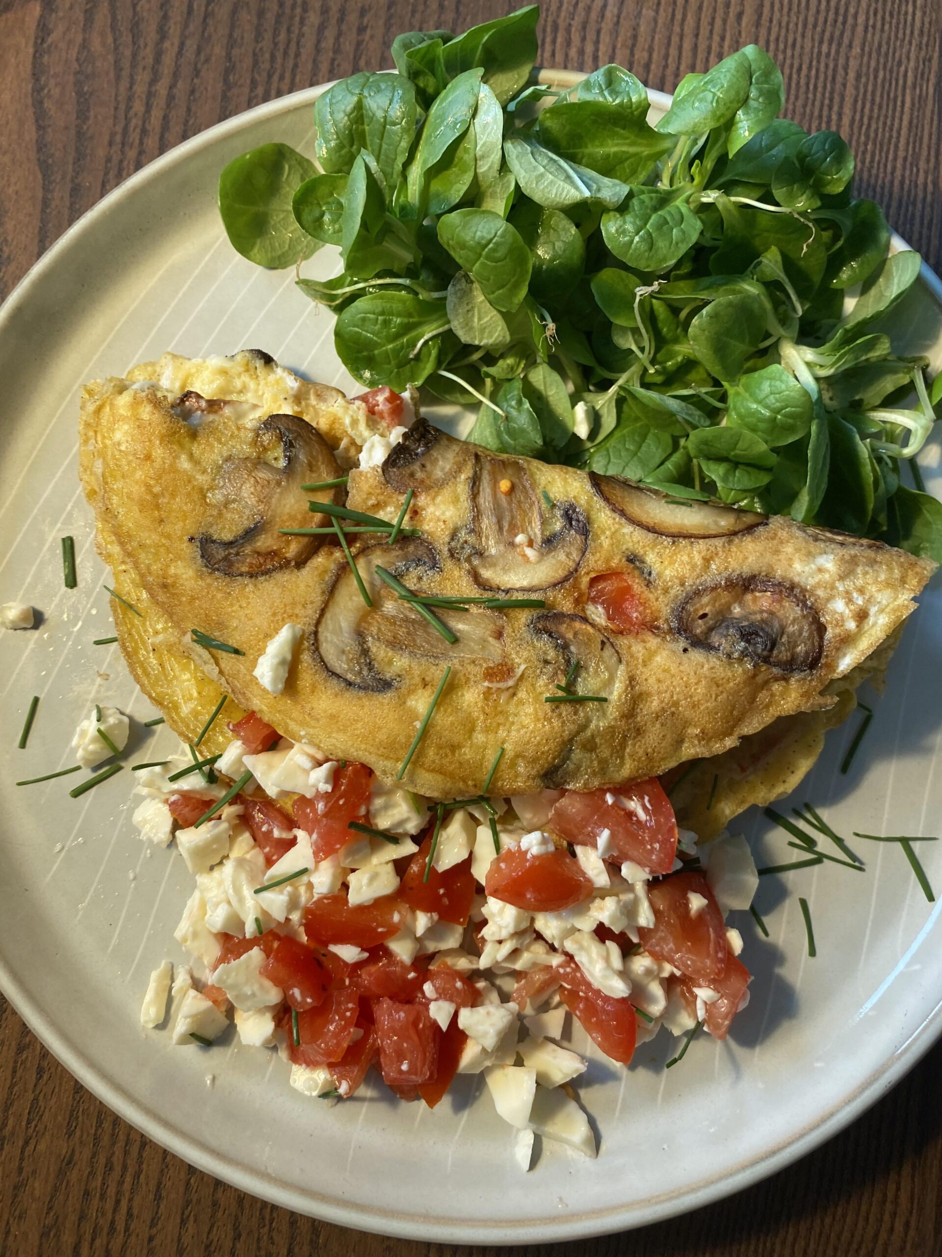 delicious, only ~300 kcal, kept me full for a long time 🙂2 eggs, 40-50g mushrooms, 1 tomato, 28g feta, 1 small piece of butter, a hand full of saladby taxii_02 Dining and Cooking
