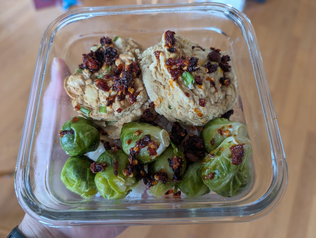 2) Work lunch. I've been working on a recipe that combines tofu and egg whites and some other stuff for a healthy, quick, novel, protein rich meal. Chili crisp is the magic though.