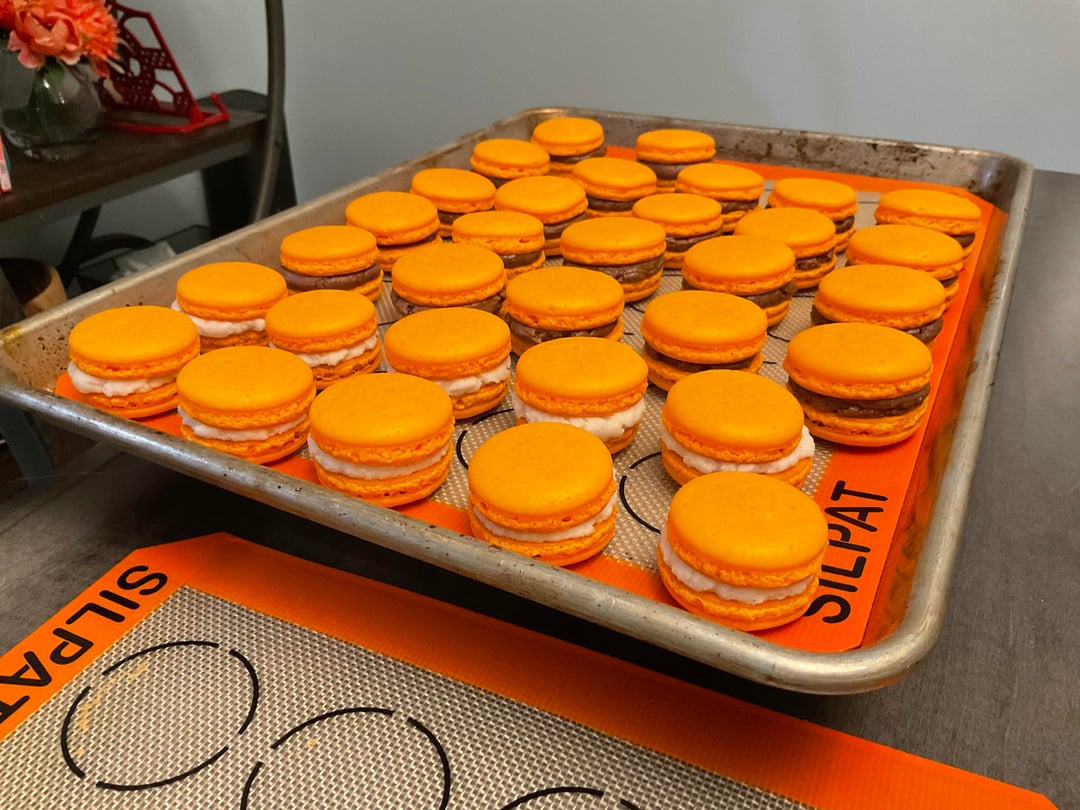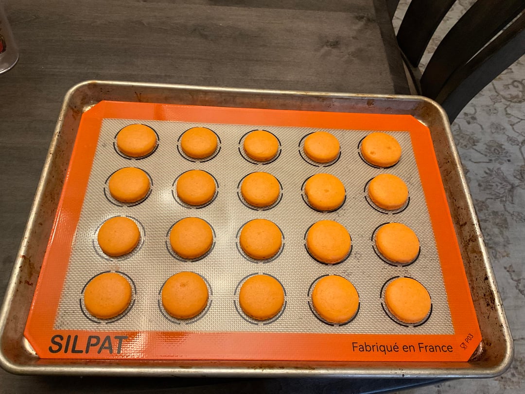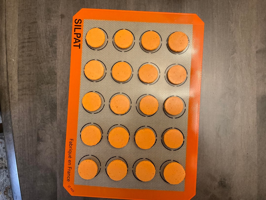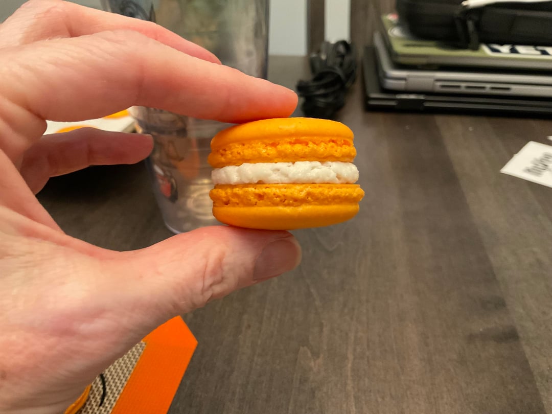 Minor in perfections from trying to pop bubbles after the skin started to form, but otherwise, these look right to me. I’m waiting to try them until tomorrow so they can properly mature. Used the American’s Test Kitchen recipe. Fillings are vegan American Buttercream from “The Elements of Baking” and chocolate peanut buttercream (used Jim’s chocolate peanut butter instead of regular because I was out) from an internet recipe. Both are FANTASTIC.