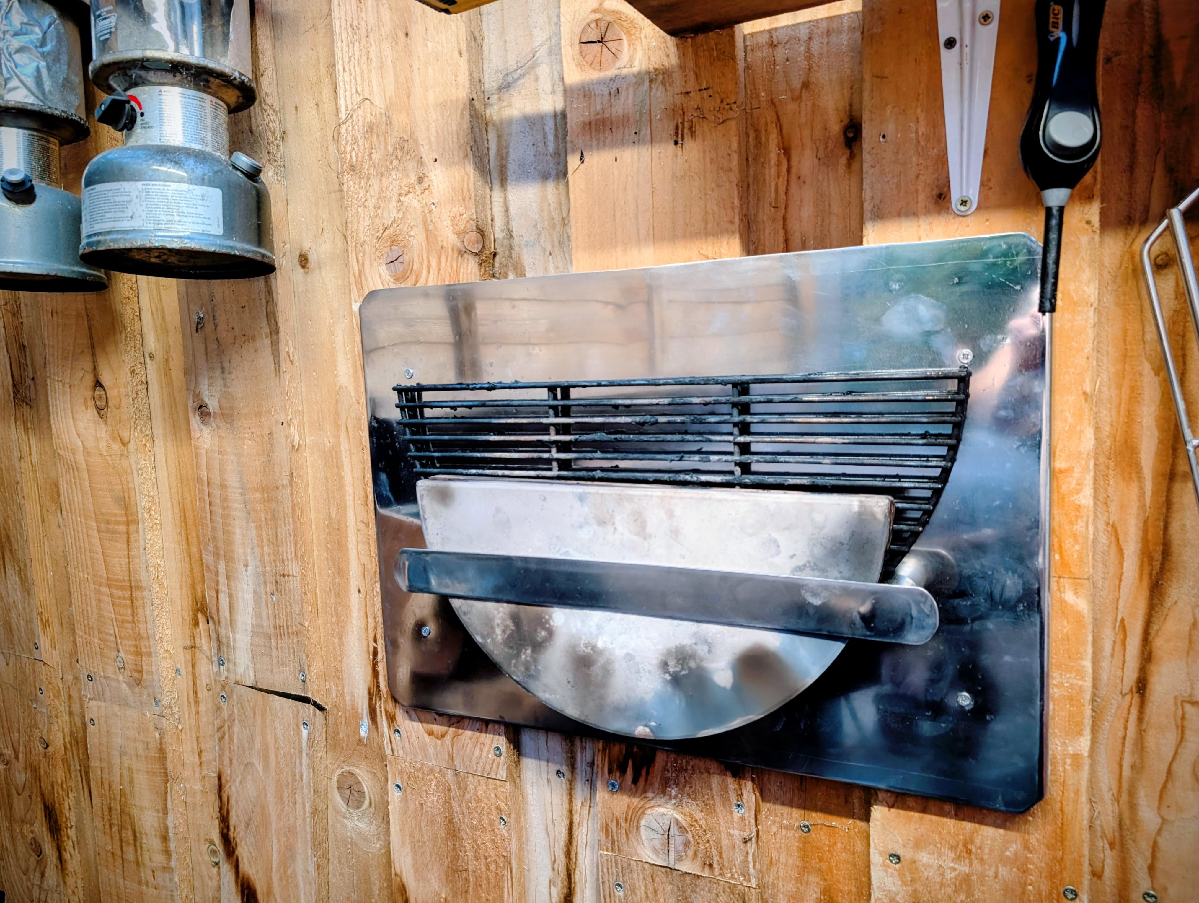 The divide and conquer plates come out red hot sometimes, after going low and slow for a reverse sear steak or whatever and I've been nervous I'm either going to torch my hut (yes I have a fire extinguisher in here), burn myself but placing an arm, hand or whatever on it or worse, someone may lean on it when we have friends over and someone's yarning with me and a beer in the hut.