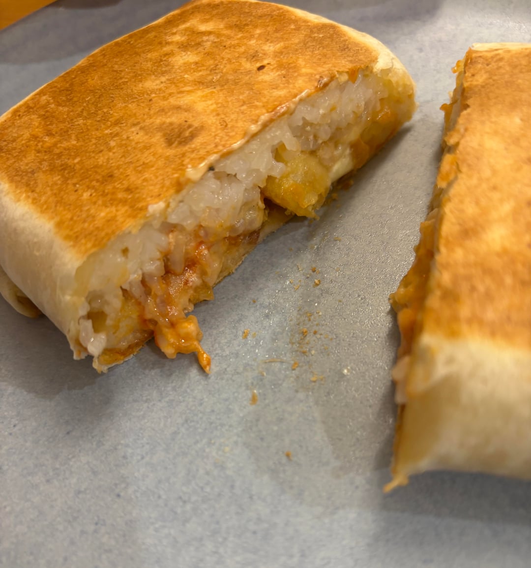 Photo 4: plain rice, hot chips and tomato sauce in a toasted wrap