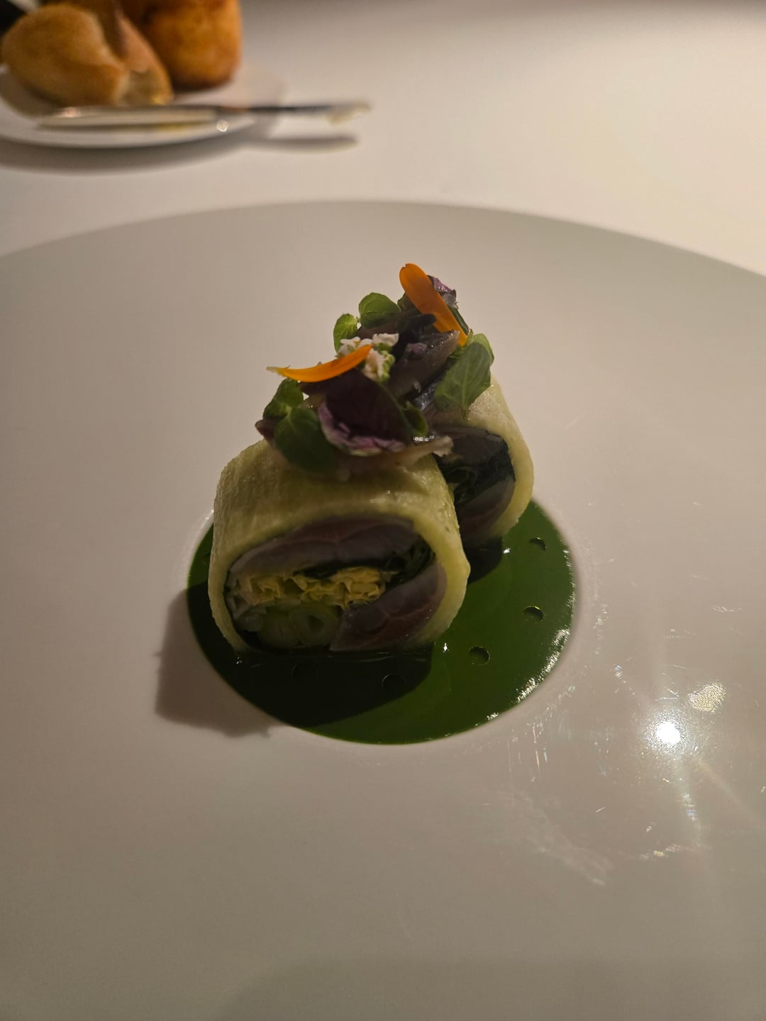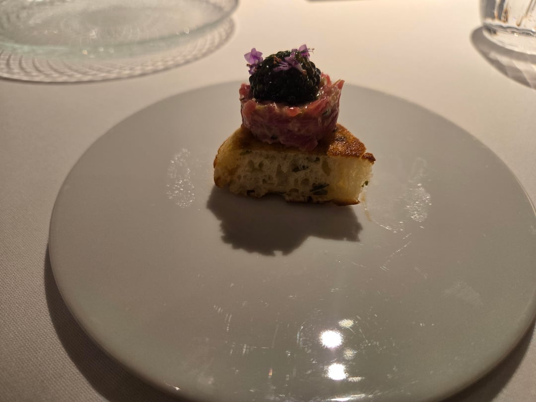 Tasting menu was fabulous. Didn't do any add ons or the wine pairings and just killed a bottle of cote rotie on my own, but the wine list was stellar and had many great choices. Really wish I got a pic of the cocktail menu- absolutely fresh, things I hadn't seen before, and really enjoyed the whole meal, start to finish. The steak tartare canape was great, also loved the pigeon and the sardines course. I was pleasantly surprised by the flavor profiles, just some new takes on ingredients you see everywhere. If youre in London i would recommend it over quite a few other 2* London spots.