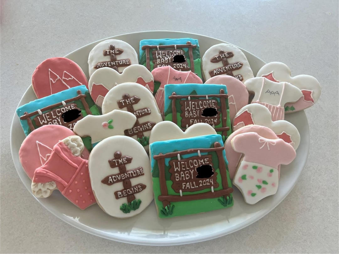 Long time lurker, first time poster and nervous as heck to do so! I made these cuties for my friend’s daughter’s first birthday 🥹 She was also the first person I made baby shower cookies for (second picture), not long after I started decorating more regularly.