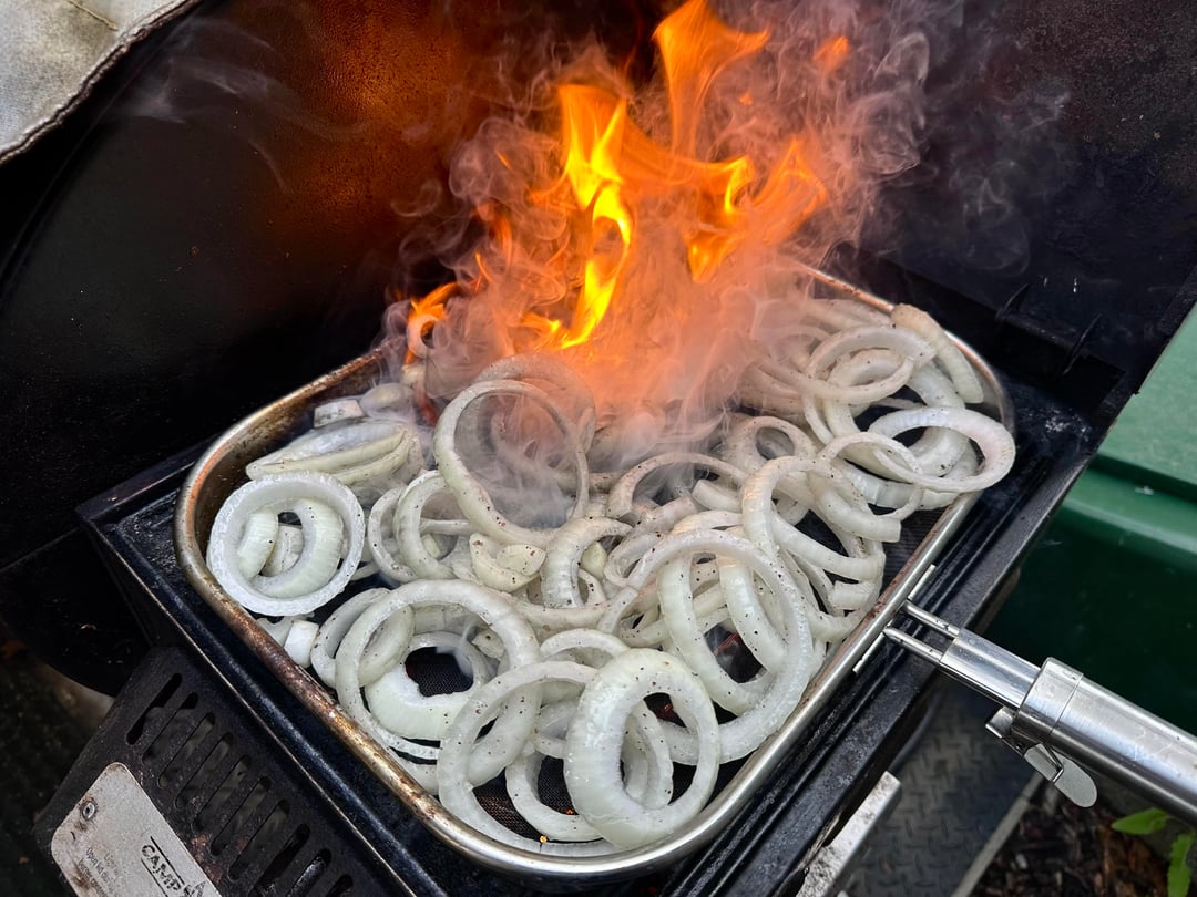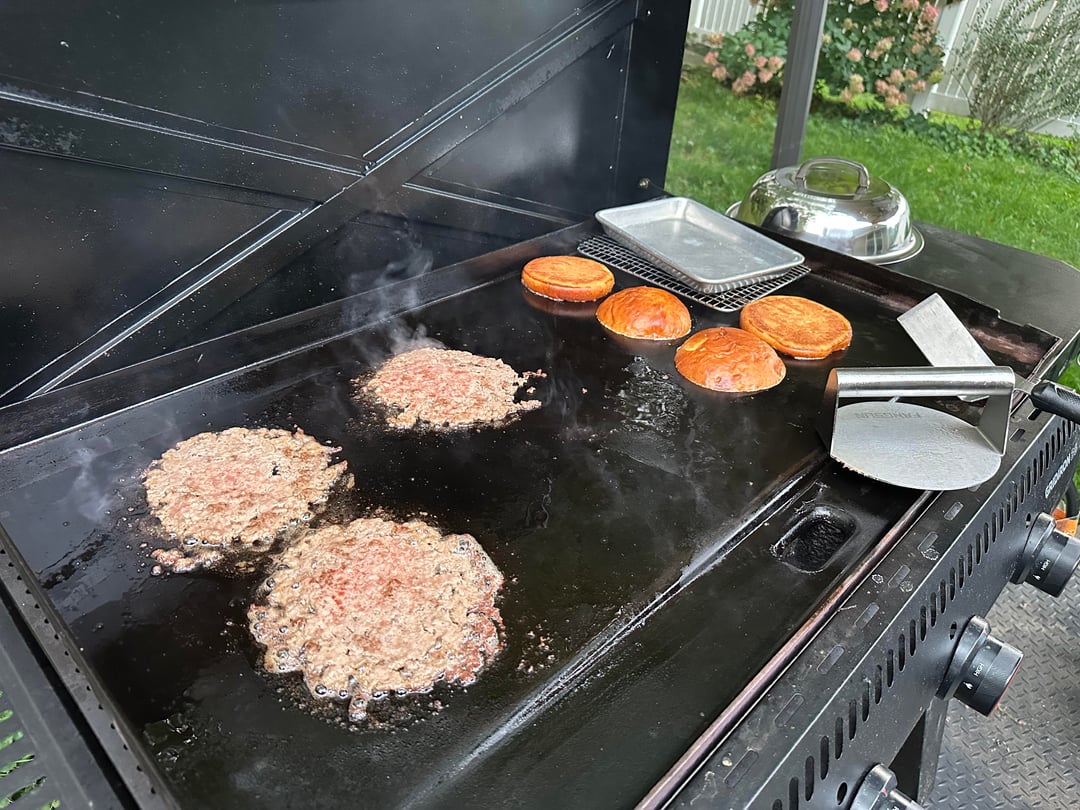 Burger night! This week’s special had home ground chuck, sirloin, and brisket smash patties, Swiss singles and American cheese, charred onions, and my sweet and zesty sauce mixed with bbq sauce, on a buttered and griddled homemade bun