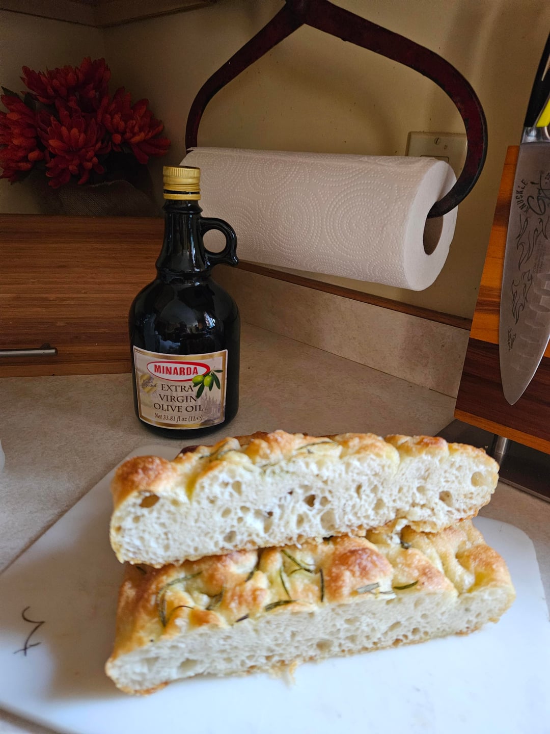 If you want, next time you can mix some rosemary into the dough as well (recommend after the first bulk proof, as part of shaping)
