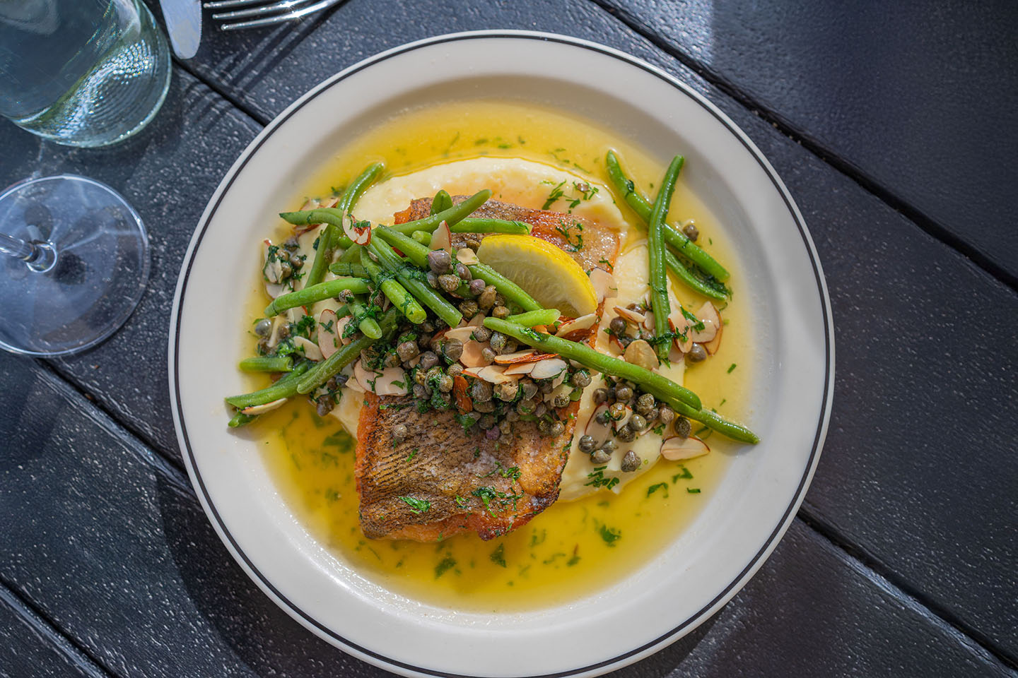 On top of the puree, a perfect filet of trout, skin crisped to a crackling bronzed finish, faces upwards. Contrasting crisp green beans come next, as do slivers of almonds, parsley, and capers – bringing salty brightness. The pièce de résistance is yet more decadence in the form of lemon-spiked brown butter, a slightly nutty sauce that lovingly wraps around the composition. It’s equal parts bright Summery lightness and Fall signalling heartiness. Enjoy it outside on the restaurant’s patio while gazing at those mountains. I probably have a half dozen times this year.