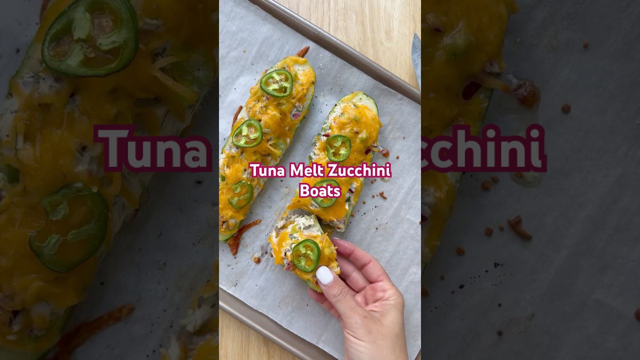 Get the full recipe here https://healthyfitnessmeals.com/tuna-melt-zucchini-boats/
