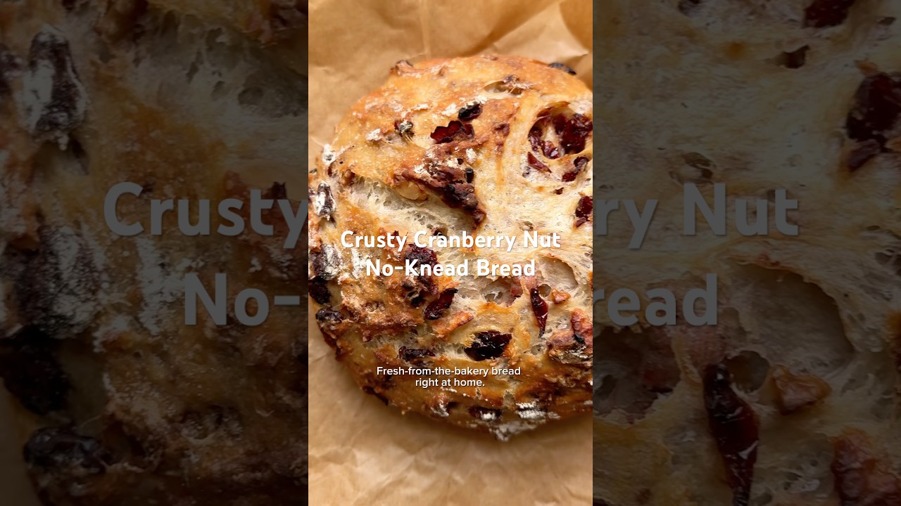 Homemade bread and easy don’t usually go together, but this cranberry nut no need bread will change that. With just seven ingredients and a long slow rise, the process is simple and practically foolproof. Use bread flour or allpurpose flour paired with coarse salt, yeast, walnuts, and cranberries. Mix a little honey with water. Then pour over the other ingredients. Expect a sticky dough. That’s exactly what you want so it bakes up with a crisp golden crust and a chewy, flavorful interior. Cover and let it sit for 12 to 18 hours at room temperature. Score the dough. Let it rest briefly, then bake it in a Dutch oven for that signature crust. Or on a baking sheet with a simple steam trick that I detail in the notes. Fresh from the bakery bread right at home. Readers rave about the results, calling the crust wonderful, the flavor incredible, and the instructions easy to follow, even for beginners.