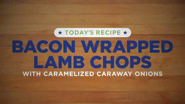 Bacon Wrapped Lamb Chops with Caramelized Caraway Onions
