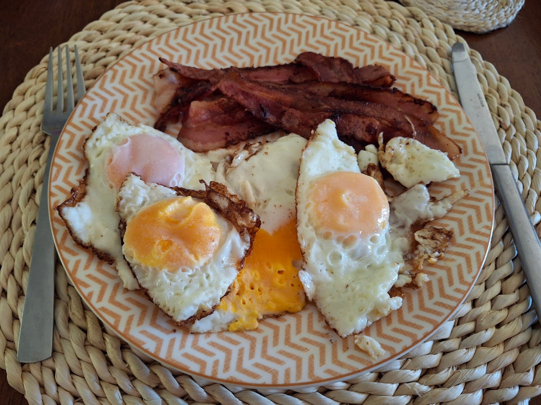 I made a low carb cake with a chocolate cream centre with a nice cup of tea, and then a second breakfast because I was a hungry girl today of bacon and eggs. I need to get a lot done today so I'm fueling up today.