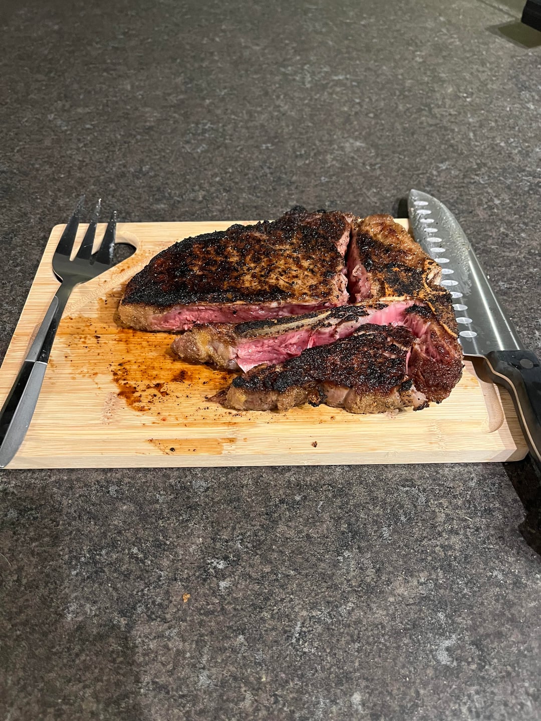 Inside looks great! The crust, honestly, is something I’d carve off because it’s too burnt. Nonetheless, I’d also say you’re on the right path on making your steak nights to die for :>