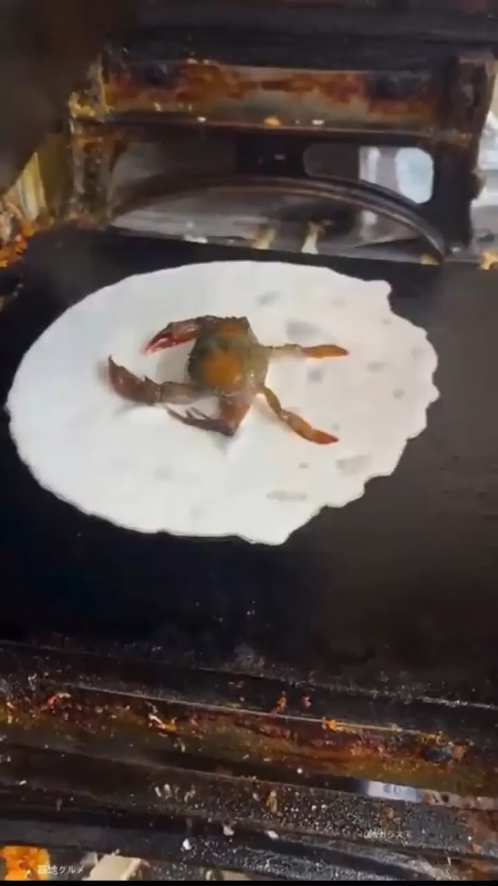 that looks interesting. I bet with the pressure and the high heat the shell gets crushed. Might be able to eat it like fried shrimp tails. Especially if that’s soft shell crab. I’d try it.