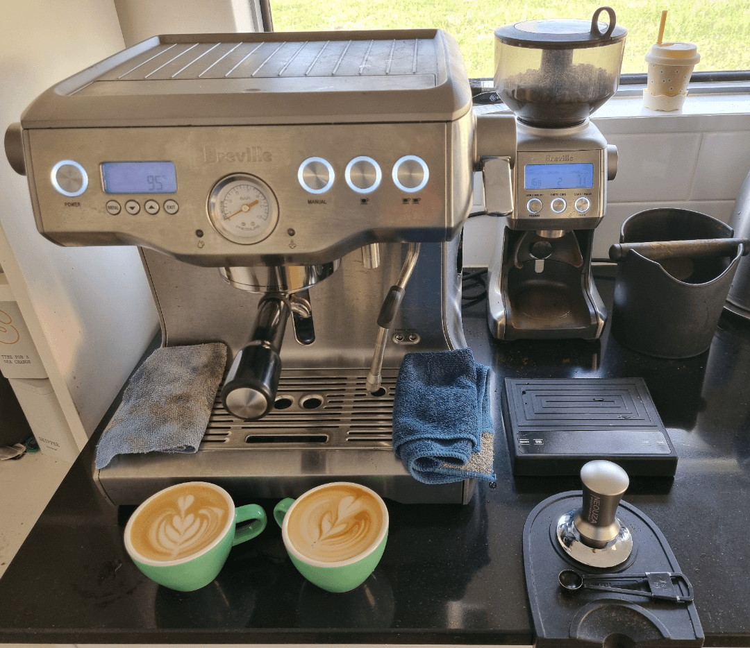Oatmilk double pour from a single jug. Machine is about 4 years old, have replaced triac, many seals, and one pump. Probably looking to upgrade it and the grinder soon (really? In this economy?), but for now it's doing the job.