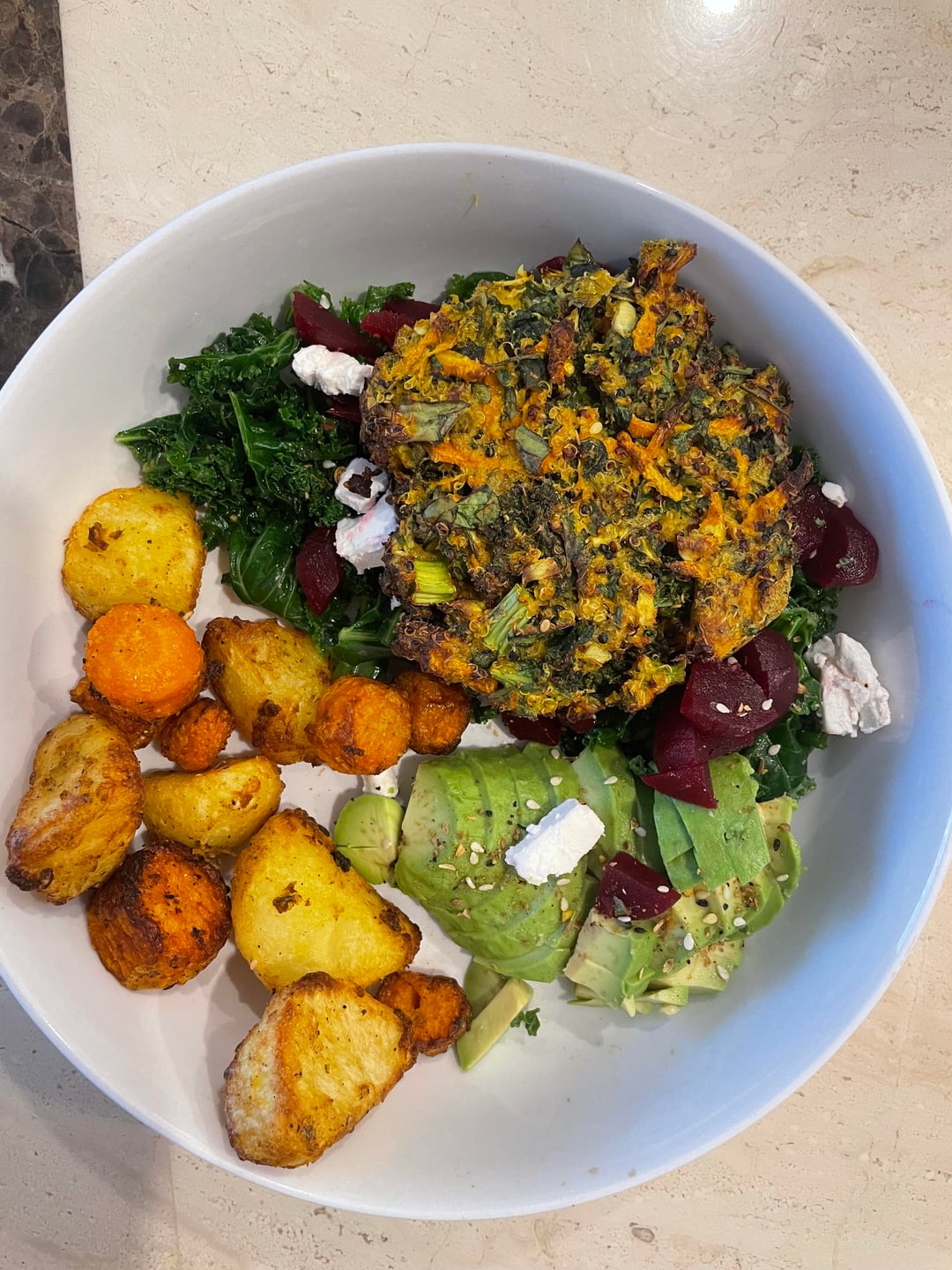 These look excellent!!! I’m curious what’s in the last picture? Potatoes, carrots, avocado, spinach or kale?, maybe goat cheese? beets? And no idea what that other thing is. Either way, I want to have breakfast at your house! Haha.