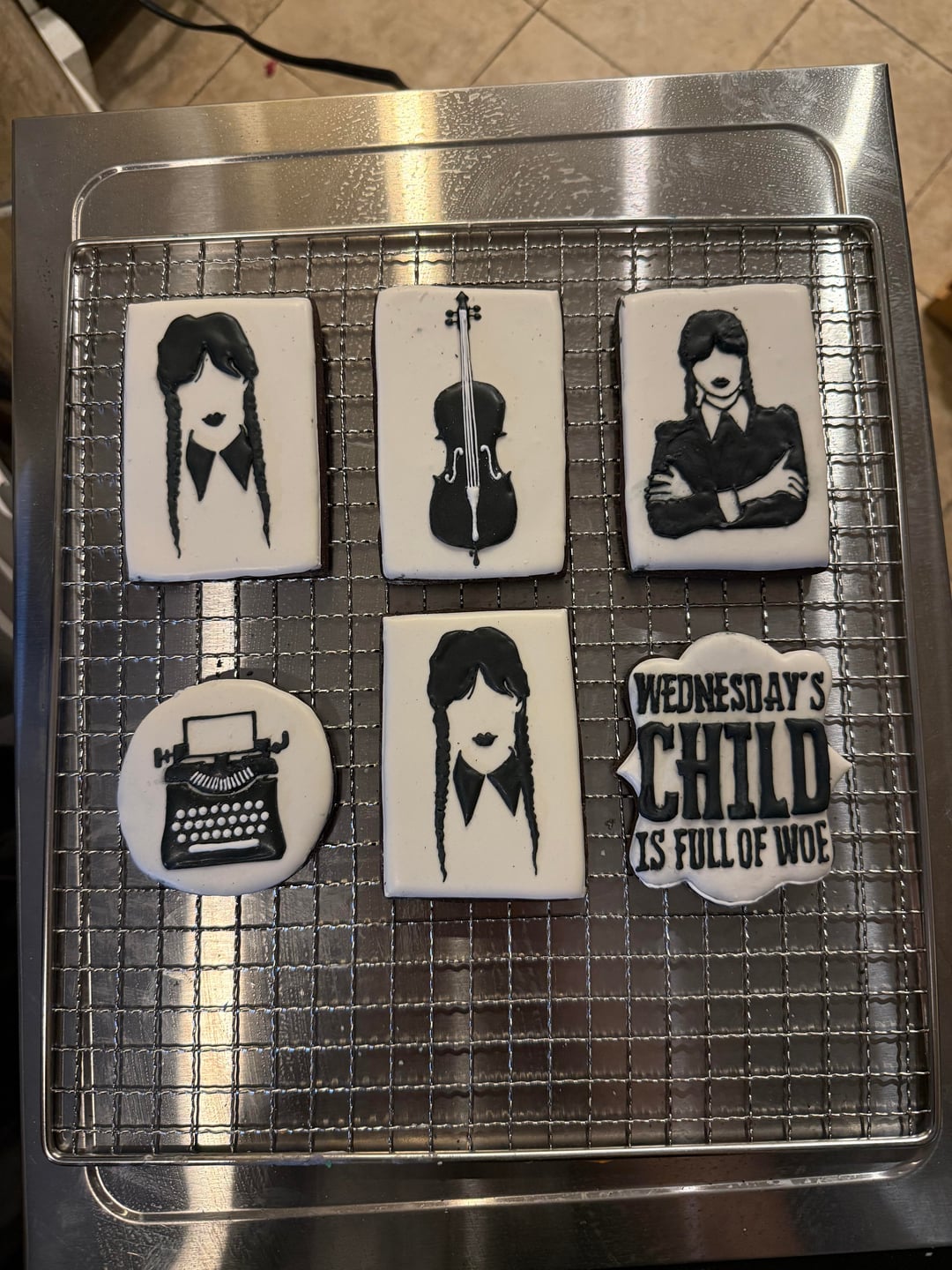 Still unfinished – but was excited to share my Wednesday-themed cookies!by Wand_Cloak_Stone 4 Comments marshymeesha 3 months ago These look so good! K-Dawgizzle 3 months ago Amazing!! Marieiram 3 months ago Omg these are stunning!!!! They are all beautiful and my fav is tied between the stained glass window and the typewriter!!! Wow these are amazing! Criticalfluffs 3 months ago I’m they look great!! I would be against eating them they’re so cute (gloomy cute?).