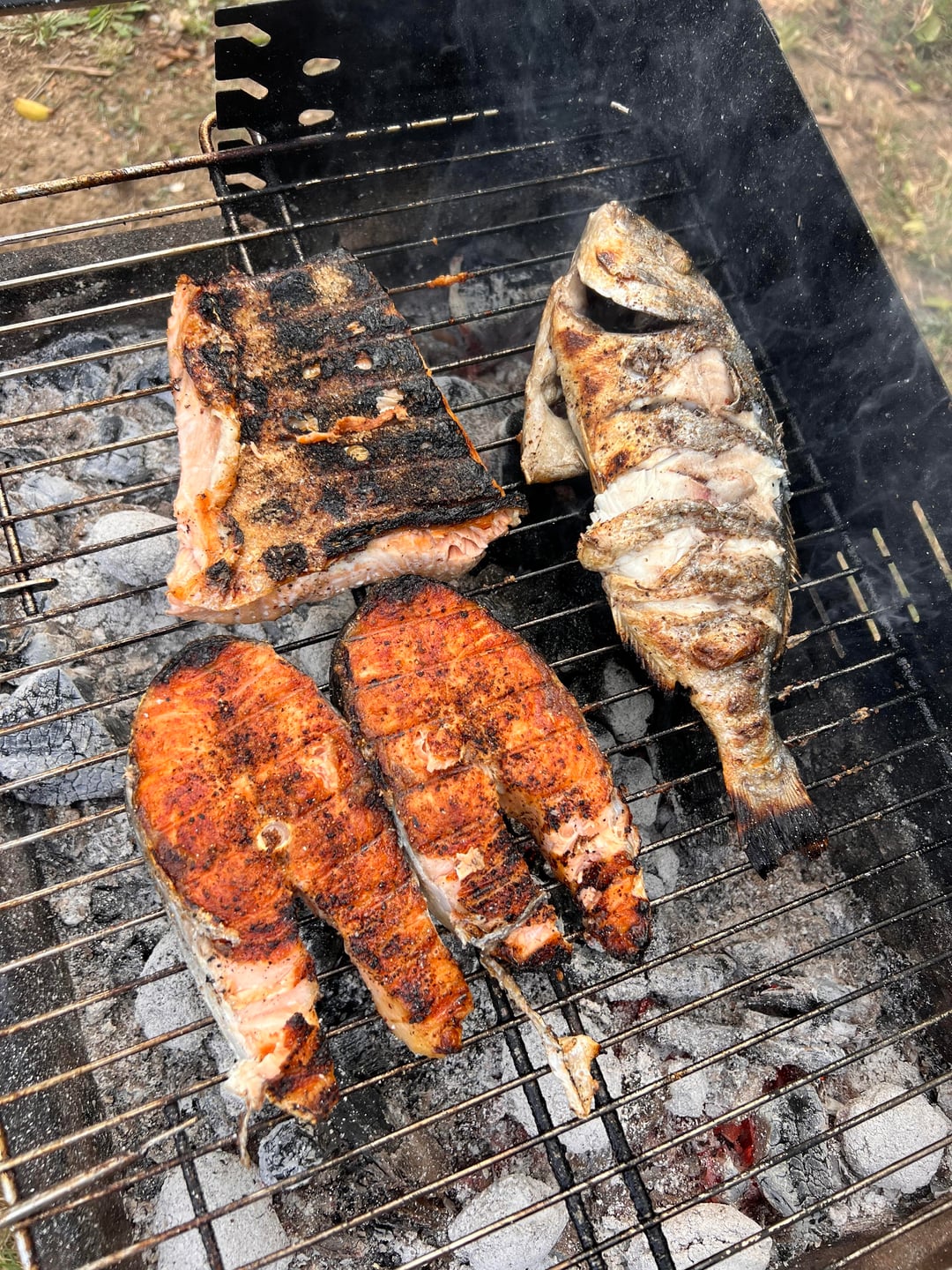 My fish ends up falling between the grates. Big ups on doing it without fish grilling basket