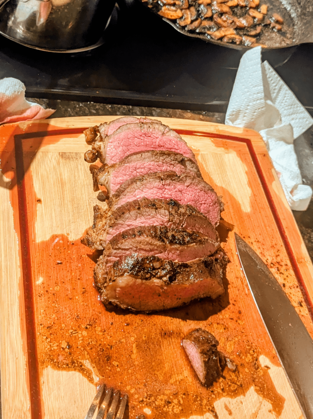Beautiful. Eye of round gets a bad rap. Cook it to the right temp and slice it thin and it’s a winner. It has good beef flavor. I think it has better beef flavor than filet