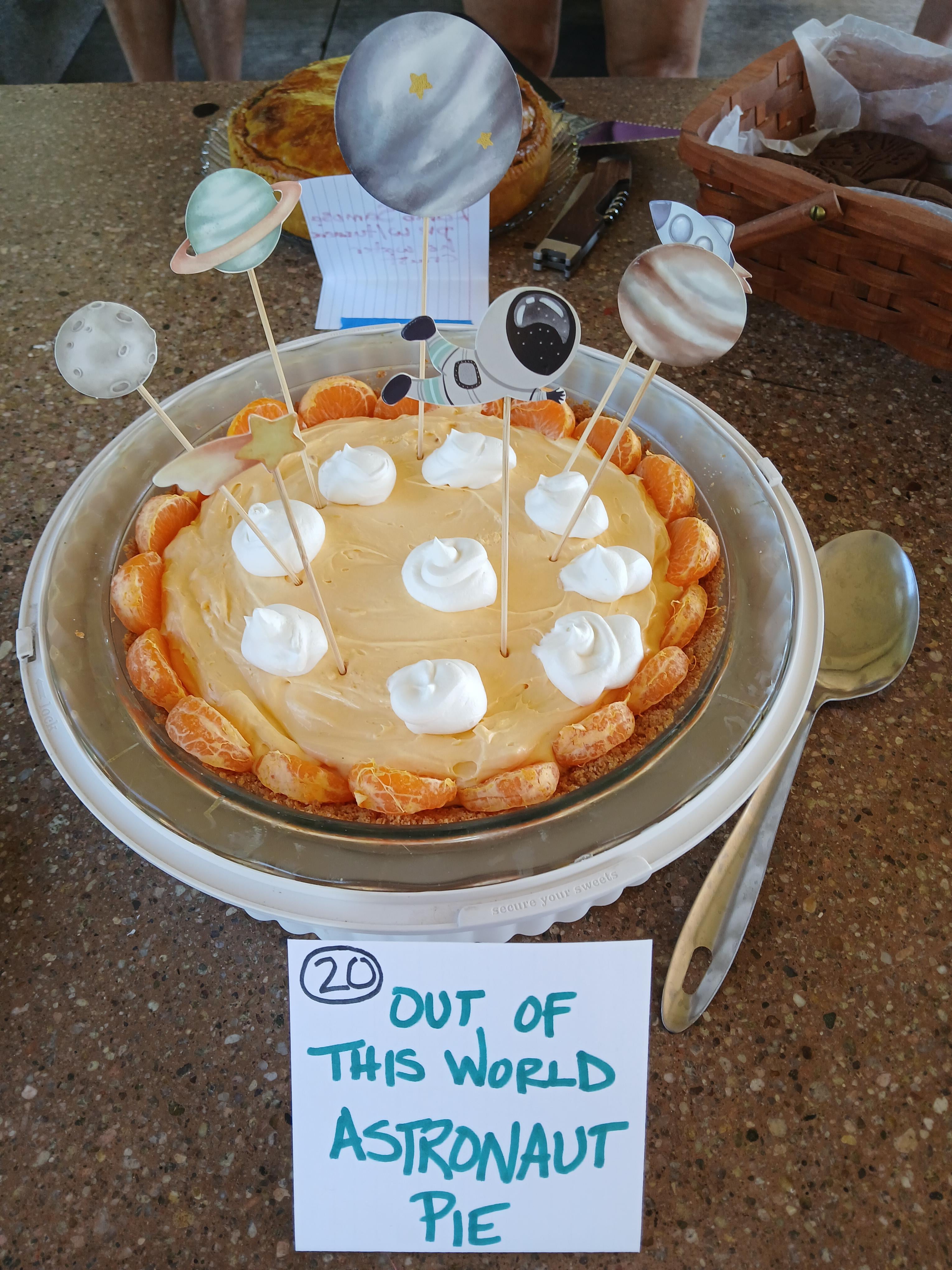 I "compete" in a friendly pie-off every year (it's more about eating pie than judging it) and this year's submission was my astronaut pie. It's Tang flavored! It didn't win in any category but I got lots of compliments. by TheCookieLady Dining and Cooking