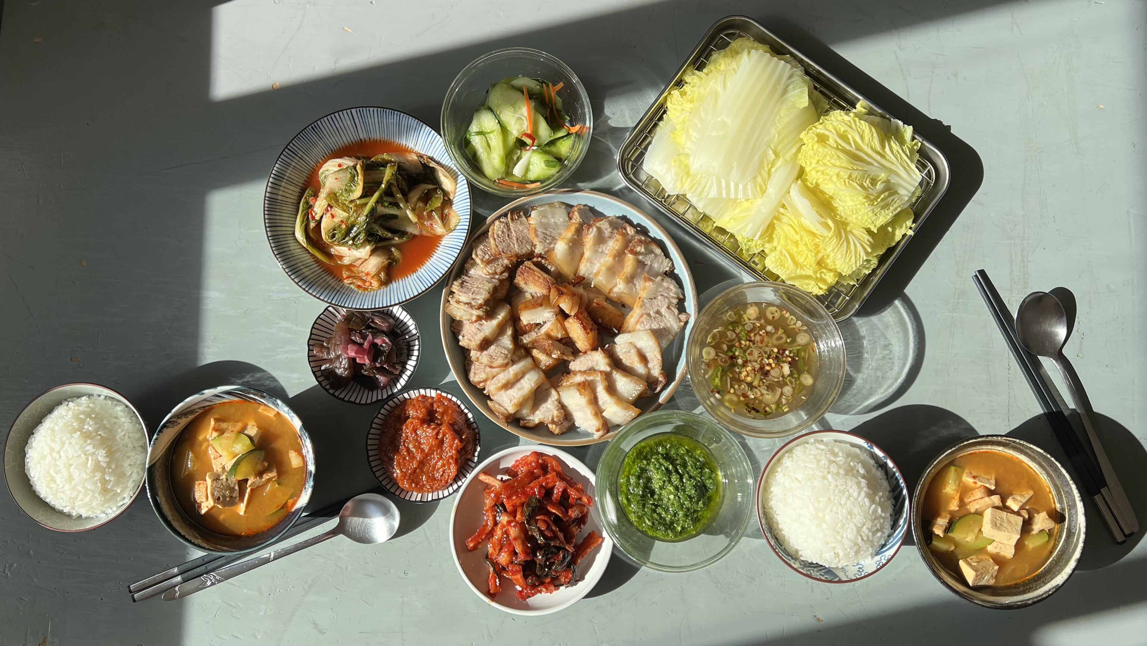 보쌈 [bo-ssam] sans 새우젓 [saeu-jut] because I didn’t feel like trekking to H-Mart! Crisped the exterior in the air fryer prior to slicing so it’s as if 보쌈 & 삼겹살 had a baby *homemade
