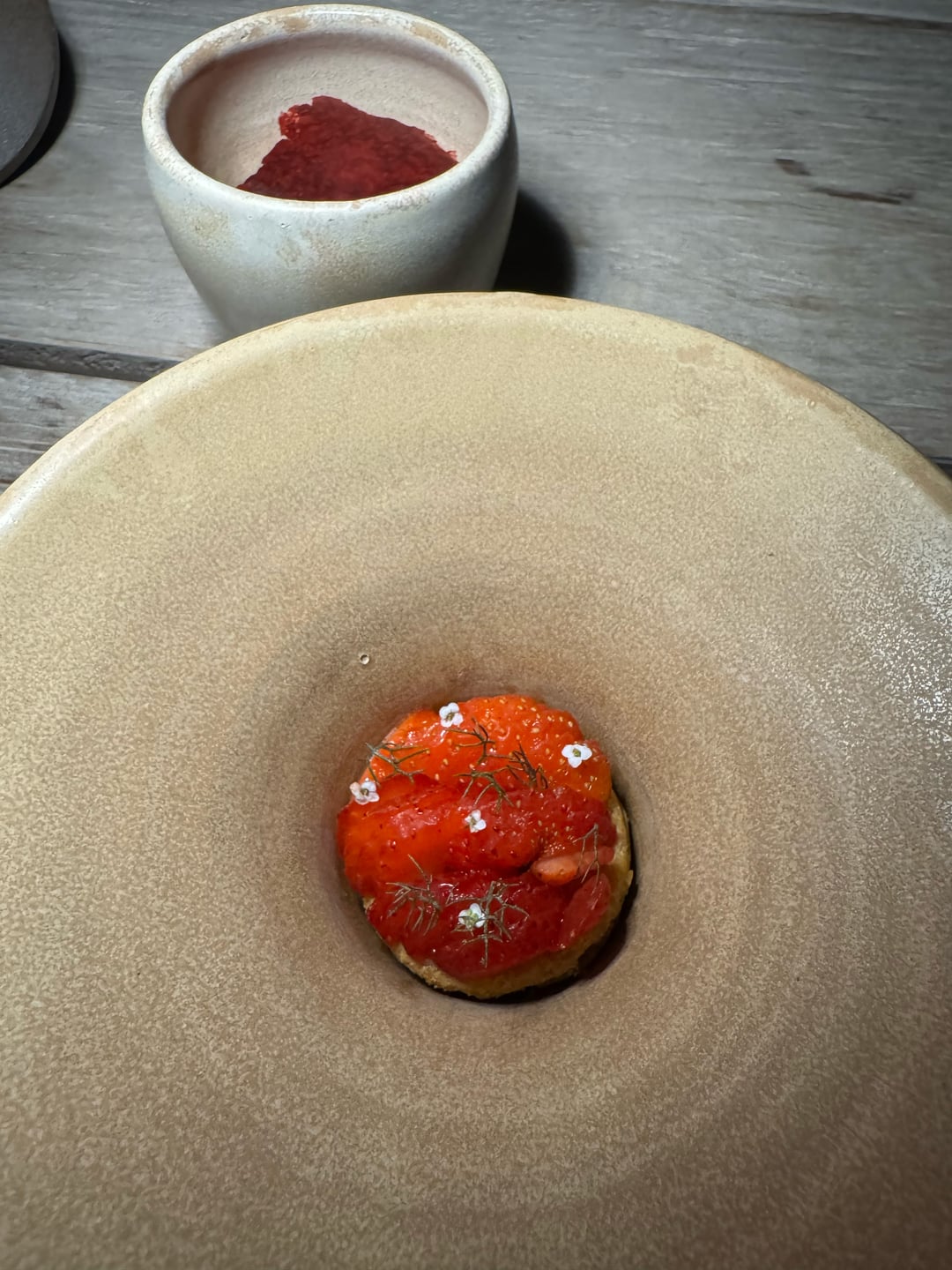 Highlights from dinner were the Oyster, Amberjack, Shrimp, Goat, and Strawberry.