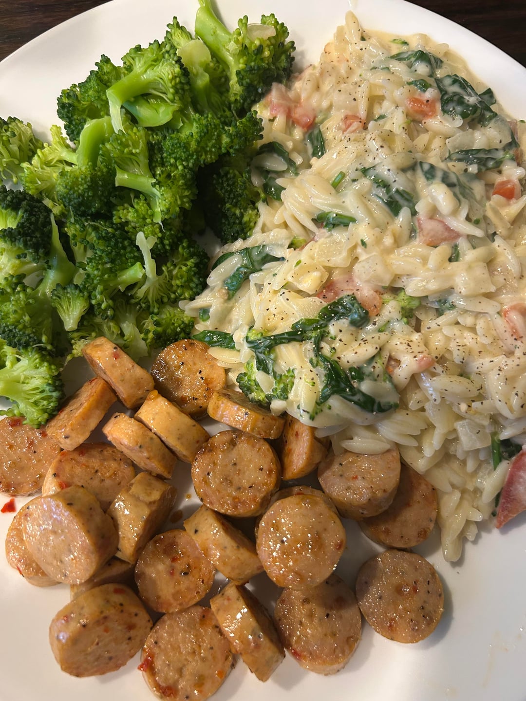 Dinner-chicken sausage, broccoli, and orzo in a Tuscan cream sauce. 550 calsby novascotia3898 6 Comments olivedeez 2 weeks ago That looks awesome!! Septon3 2 weeks ago Mmmh looks so tasty yummy sproock 2 weeks ago that looks so gas pushaper 2 weeks ago tell me more about the orzo preparation? sheibz 2 weeks ago Looks amazing! Huneybunnie928 2 weeks ago Looks amazing! How do you make the orzo?