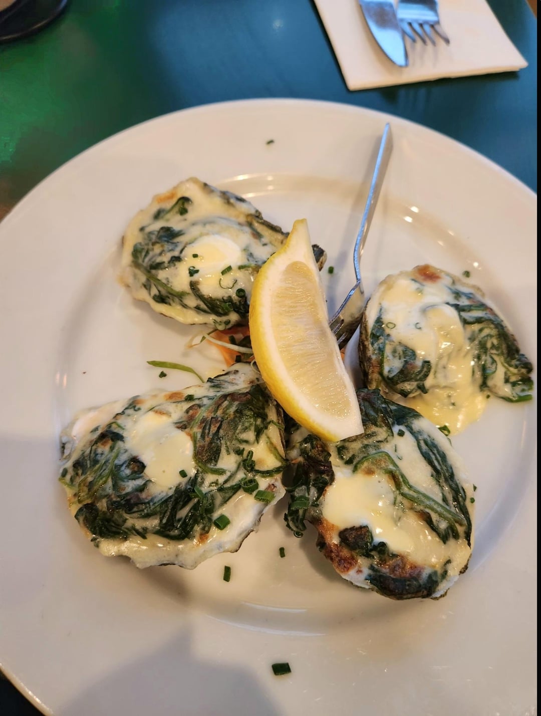 I’ll be honest, they don’t look bad, but they both look like they’re not complimenting the actual taste of the seafood. I love bacon, but a strip is lazy and too much. The Rockefeller looks like they didn’t chop the spinach or broil them enough to get some flavor on there. The seafood should always be the focus. These are just not well executed, but I would absolutely still eat them. I feel like an asshole with this comment, I’m sorry. I hope these aren’t from Brax Landing because I had my first Rockefellers there 25 years ago and they were a gateway drug.