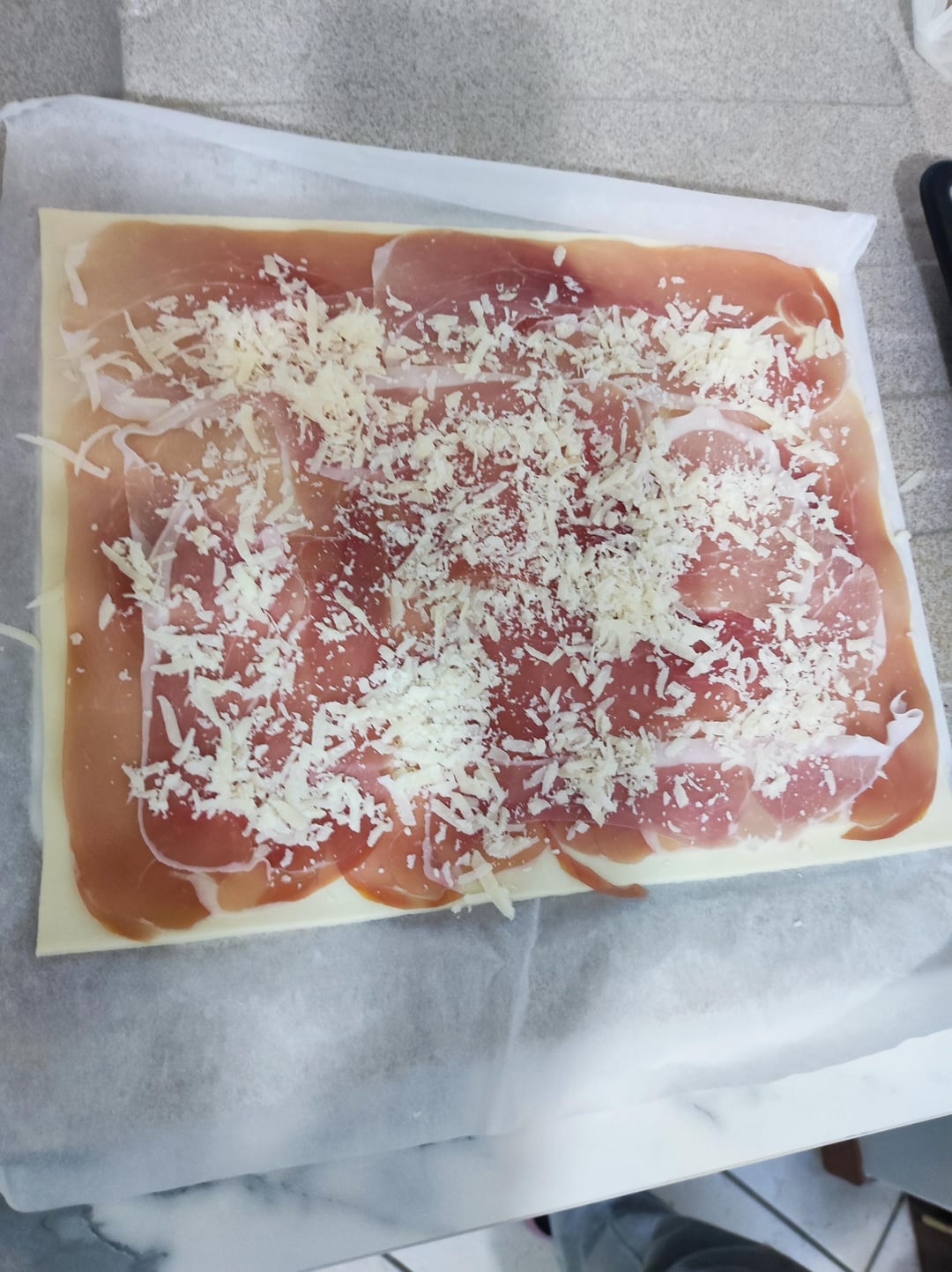 Homemade salatini. (puff pastry with raw ham and parmesan cheese)
