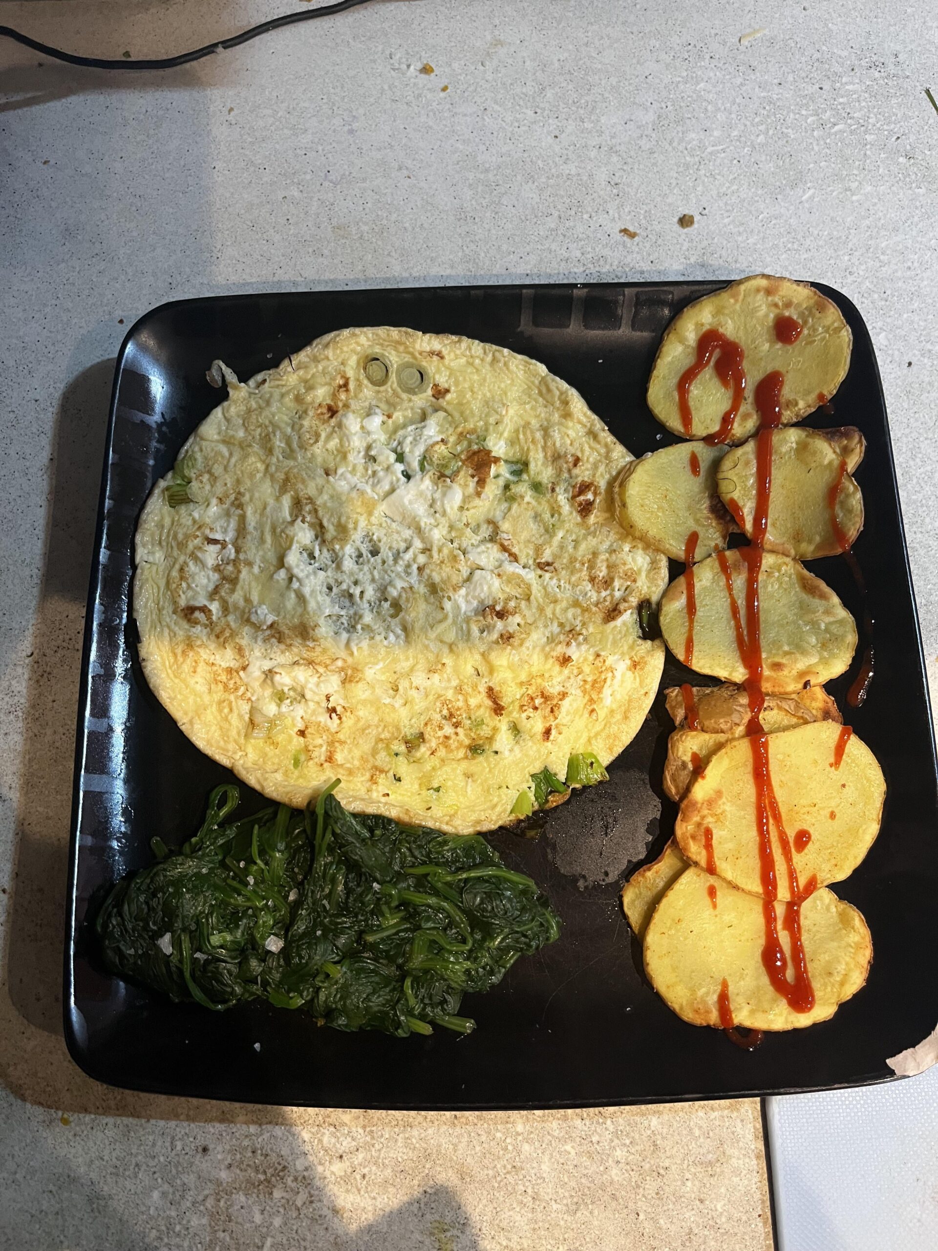 2 egg omelette with 20g feta and a spring onion cooked in 1tsp oil
