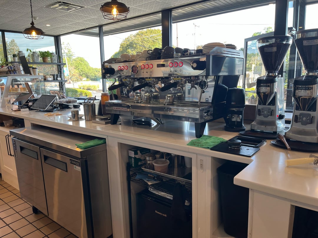 Previously, we would do cup, sticker, syrup, espresso, milk, ice, lid & serve. This worked very well with one person on slow days. And for busy days it would be split up with the person on the left doing cup, sticker, milk and syrup. And the person on the right doing espresso, ice, lid, and serve.