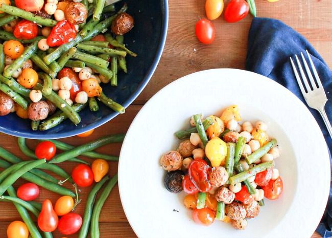 Green Bean, Tomato, and Basil Sheet Pan Dinner