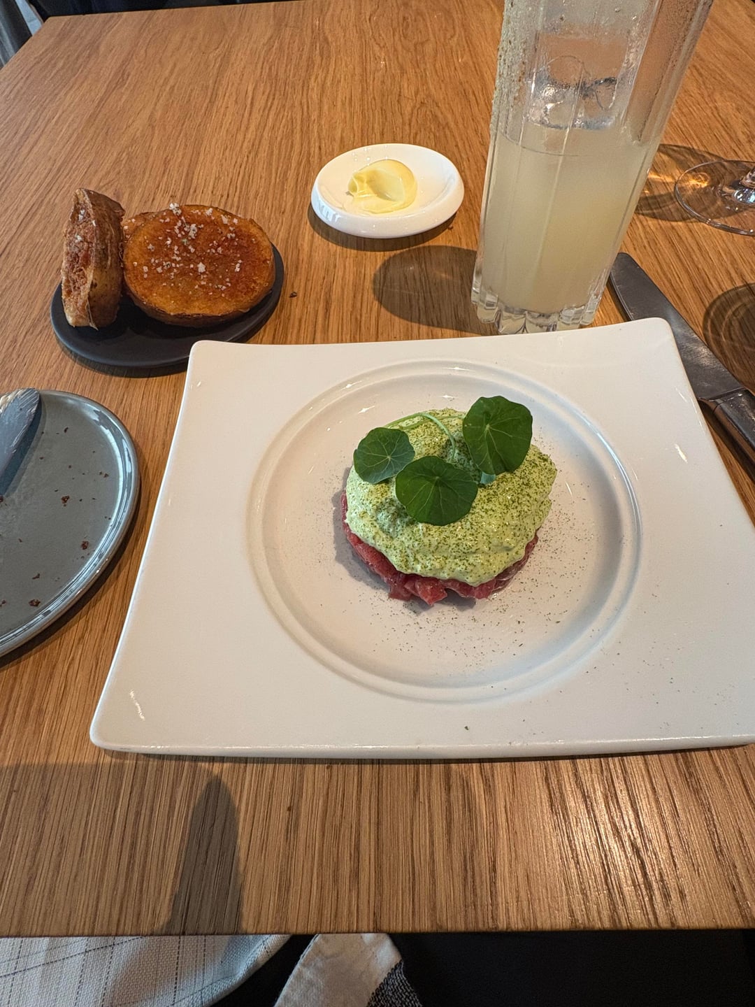 -First time at 2 Michelin star restaurant. The food was amazing. The tartare melted in your mouth and was perfect paired with crispy, fluffy potatoes. The pasta sauce was like a gravy that went perfectly with the rabbit. The ice cream sandwich was a great end to the meal. I wish the crust part of the sandwich was a little thicker. I also left completely stuffed. My reservation was at 12:45pm which is right around when I usually eat lunch and I didn’t eat dinner till almost 10pm