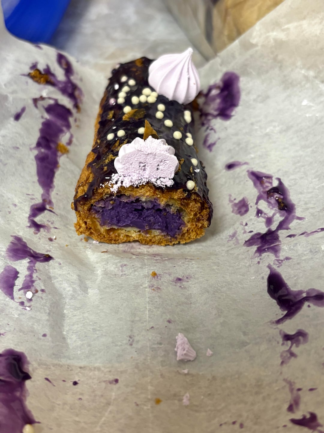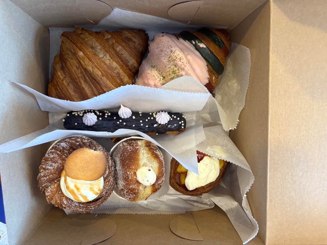14-16. Supermoon Bakehouse-plain croissant, Matcha Strawberry Latte Croissant, ube eclair, banana pudding cruffin, berries and cream doughnut, peach Melba danish