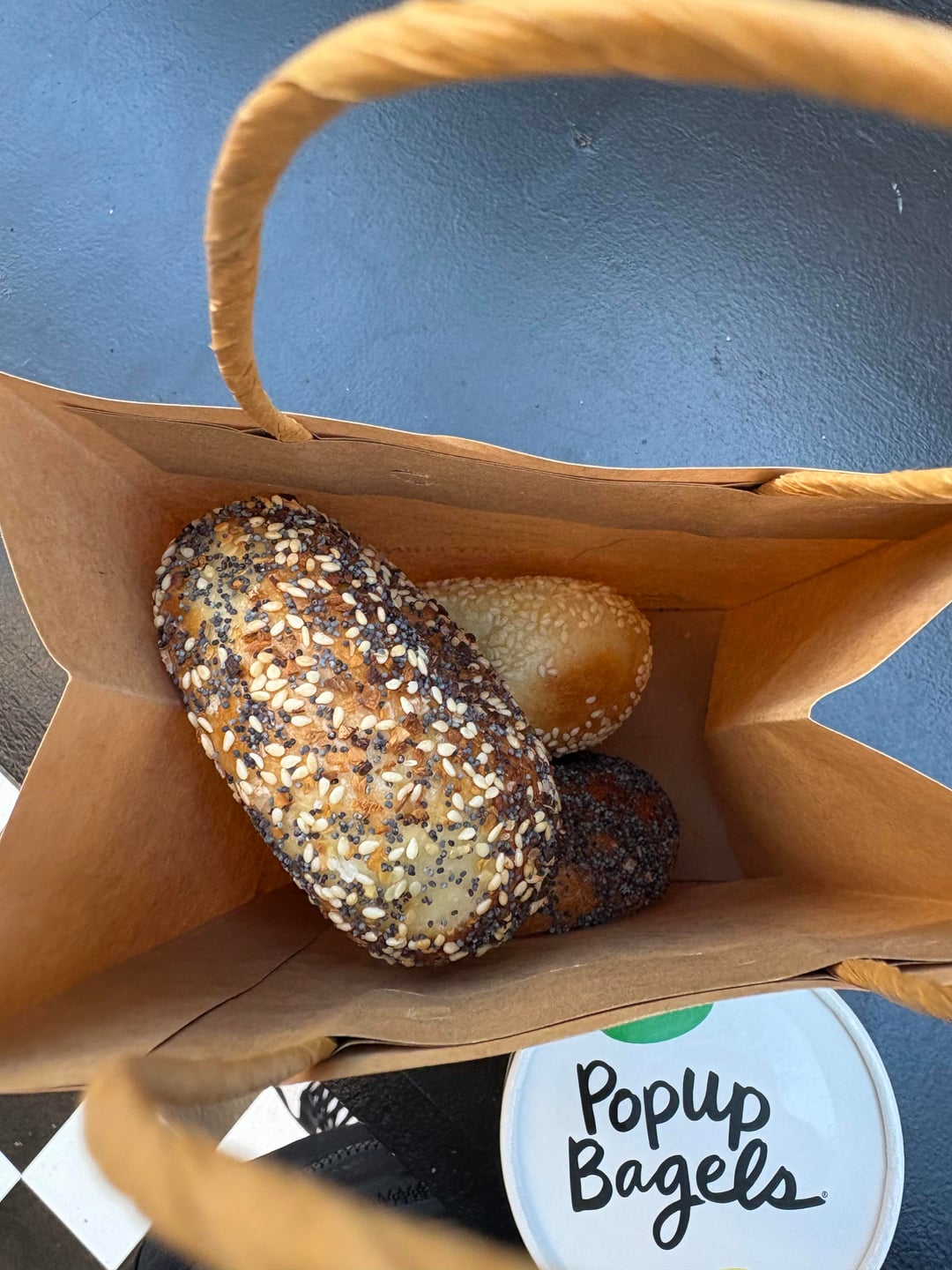 -Had this late after a few drinks so it may have swayed my opinion but it’s some of the best pizza I’ve ever had. Joe’s in the west village is usually my go to but this was near me and I heard great things. Did not disappoint and I’d definitely get it againPopUp Bagels-everything, sesame, poppy, scallion cream cheese