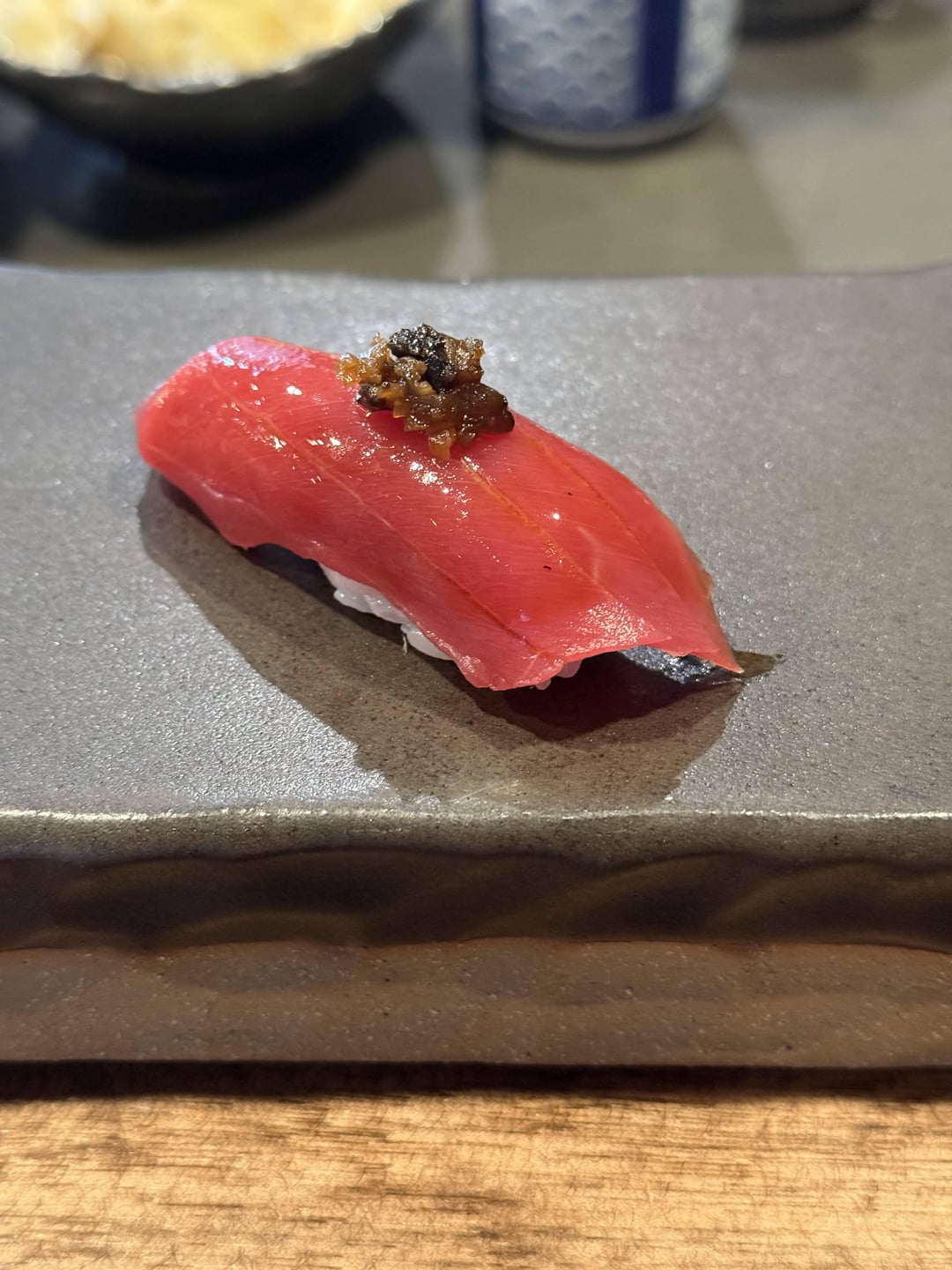 - Chutoro, dry aged for 4 days with miso mustard sauce