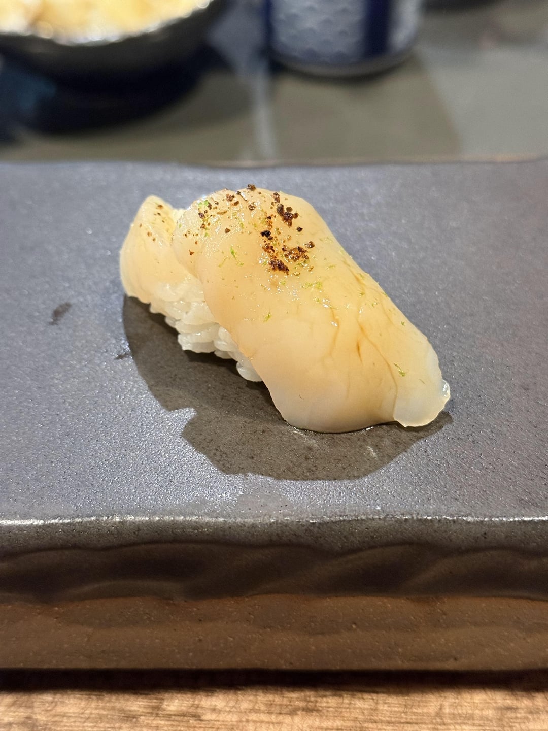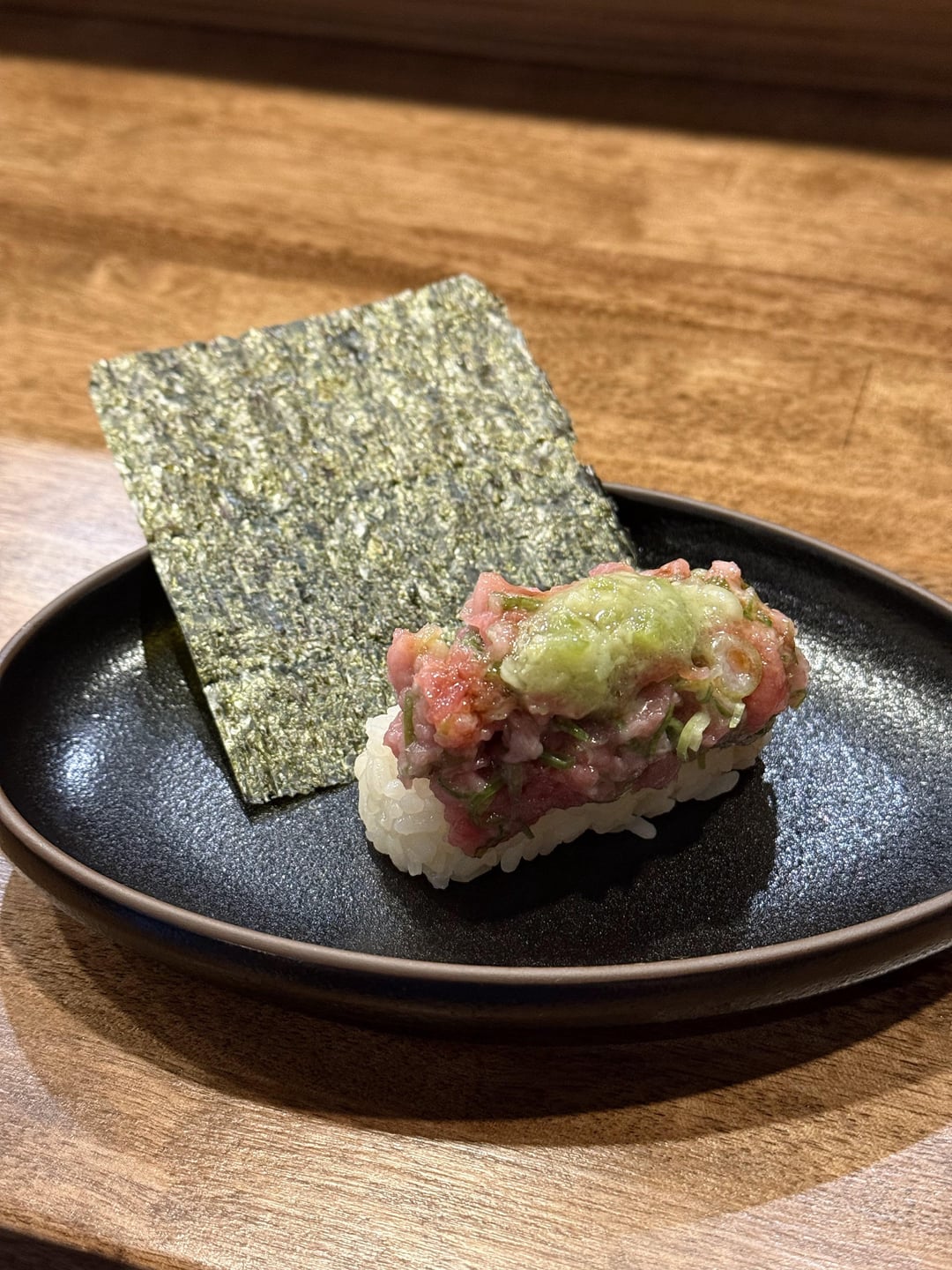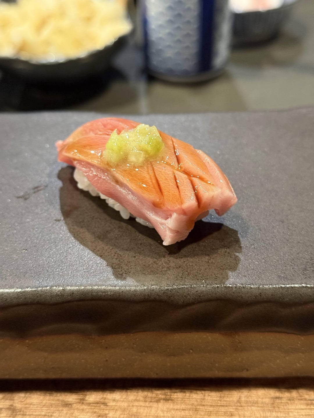 Everything tasted fresh and was a good amount of food. Our favorites were the sawara for how savory it was, saba for the texture, chutoro, kanpachi for the crunchy chip, and the otoro for how well it paired with the wasabi salsa (pickled wasabi, fresh wasabi, leek, green onion). There were some unique toppings we'd never had with sushi before, like the fermented black bean paste or pickled apricot, which worked surprisingly well. Some of the nigiri had a touch too much wasabi for my partner's taste, but I personally enjoyed the amounts used. Overall a great experience and would recommend!