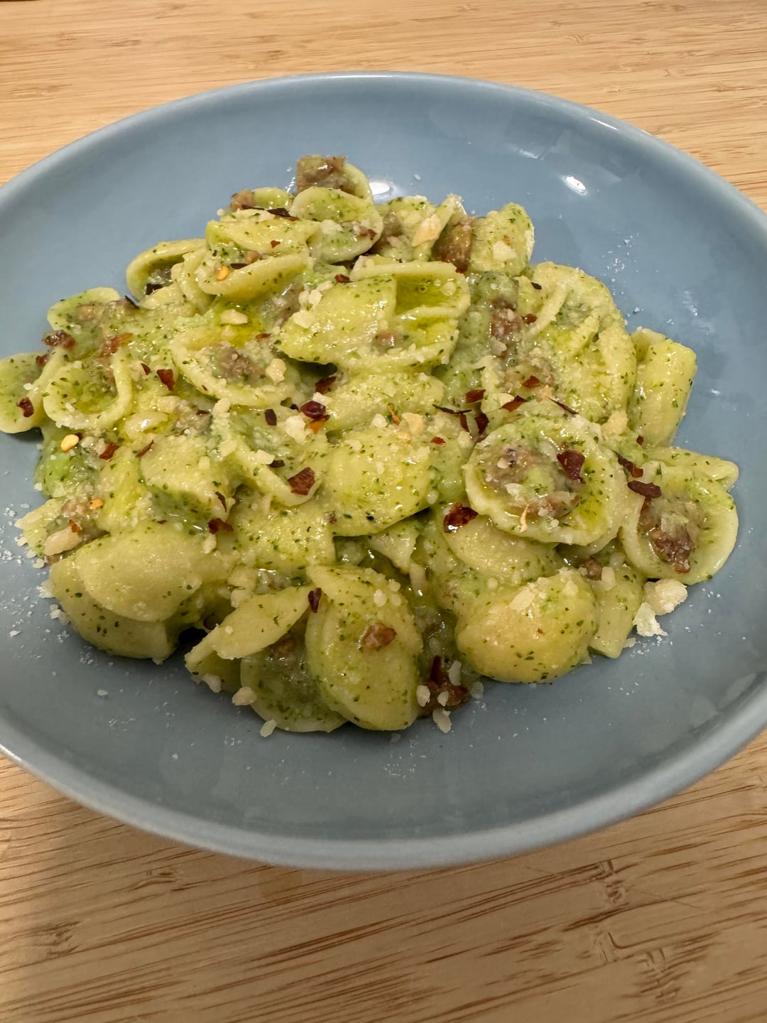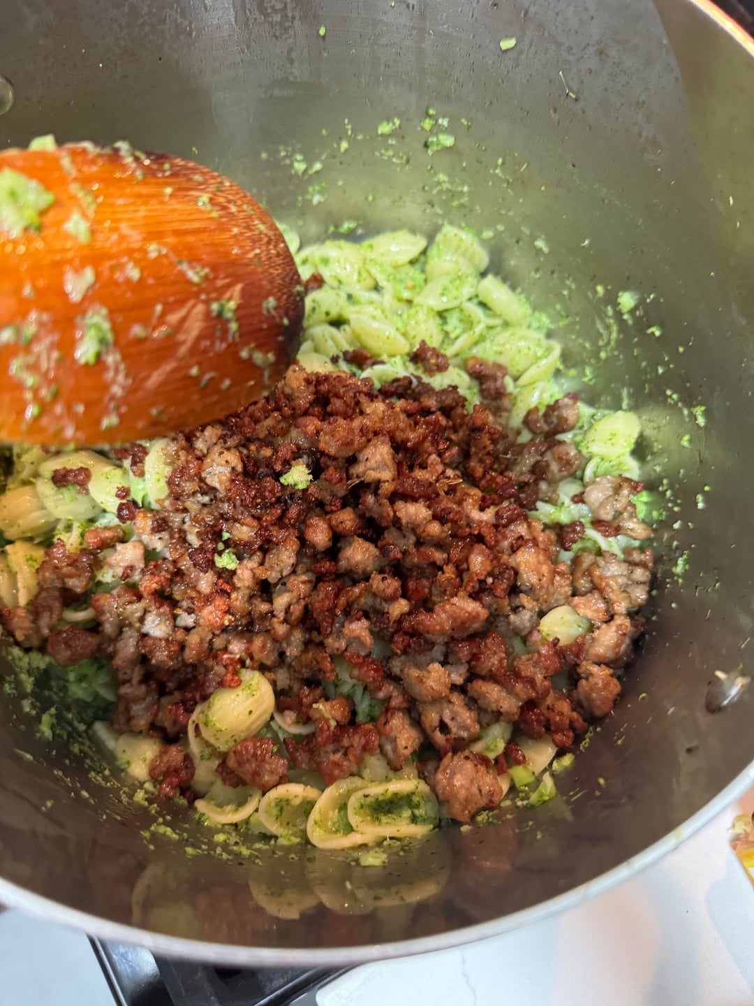 troublingmayonaisse 6 months ago Took inspiration from this recipe: https://www.skinnytaste.com/orecchiette-pasta-with-chicken-sausage/Note: this version is definitely not “skinny” and uses full fat pork sausage and lots of olive oil and cheese.I chopped up the broccoli very, very finely so that it became part of the sauce and added some good olive oil + chili flakes at the end.