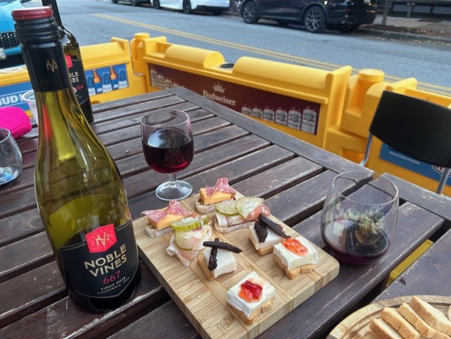 Wine is the star here, and the house bottles are an incredible bargain. Johnson enlisted a panel of regulars for tastings to help pick out the labels, and the Noble Vines pinot noir we enjoyed at one of the tables out front was excellent. When we learned that it cost just $21.99, our jaws dropped. (Since our mouths were open, we ordered another bottle.)