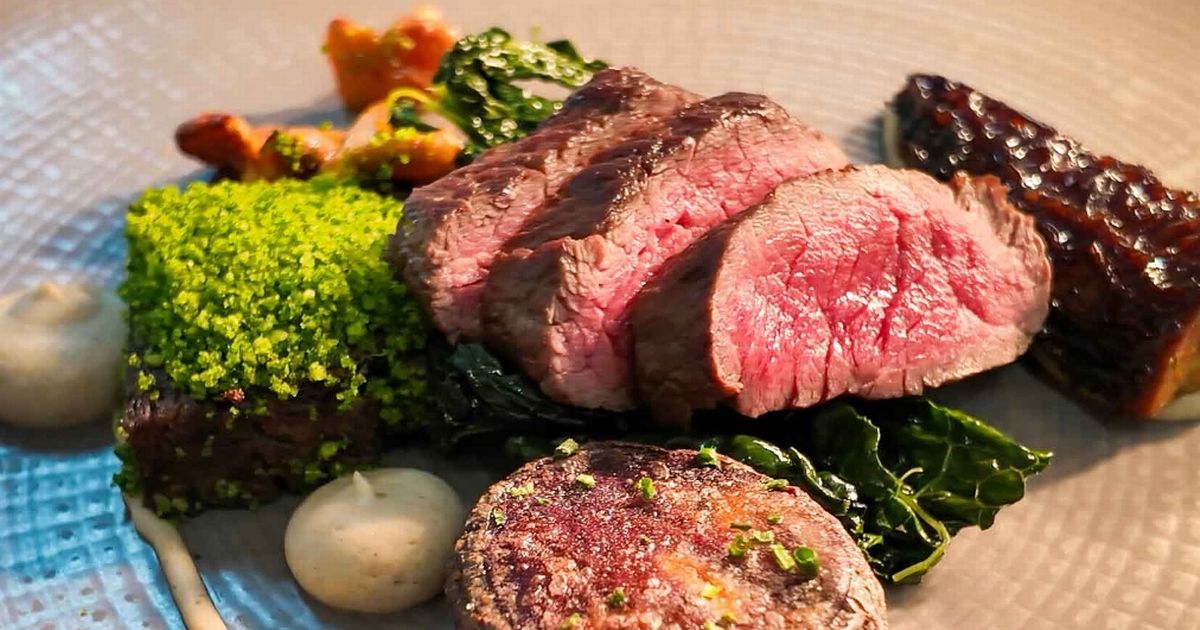 Smoked pork wrapped terrine of Cheshire venison, apricot, pheasant & pistachio served with classic Cumberland sauceDuck Roll: Salt-aged duck confit “Feuille de Bric” parcel with onion seed crumb, sauté of oyster mushrooms, leek and puy lentilsTwice-baked soufflé of natural smoked haddock & Sandham’s mature Lancashire cheese with a vadouvan leek sauce and keta caviarSalad of salt-aged beetroot with blackberry, balsamic & Kalamata olive dressing, marinated vegan feta cheese,dill & cucumber relish and winter leaves