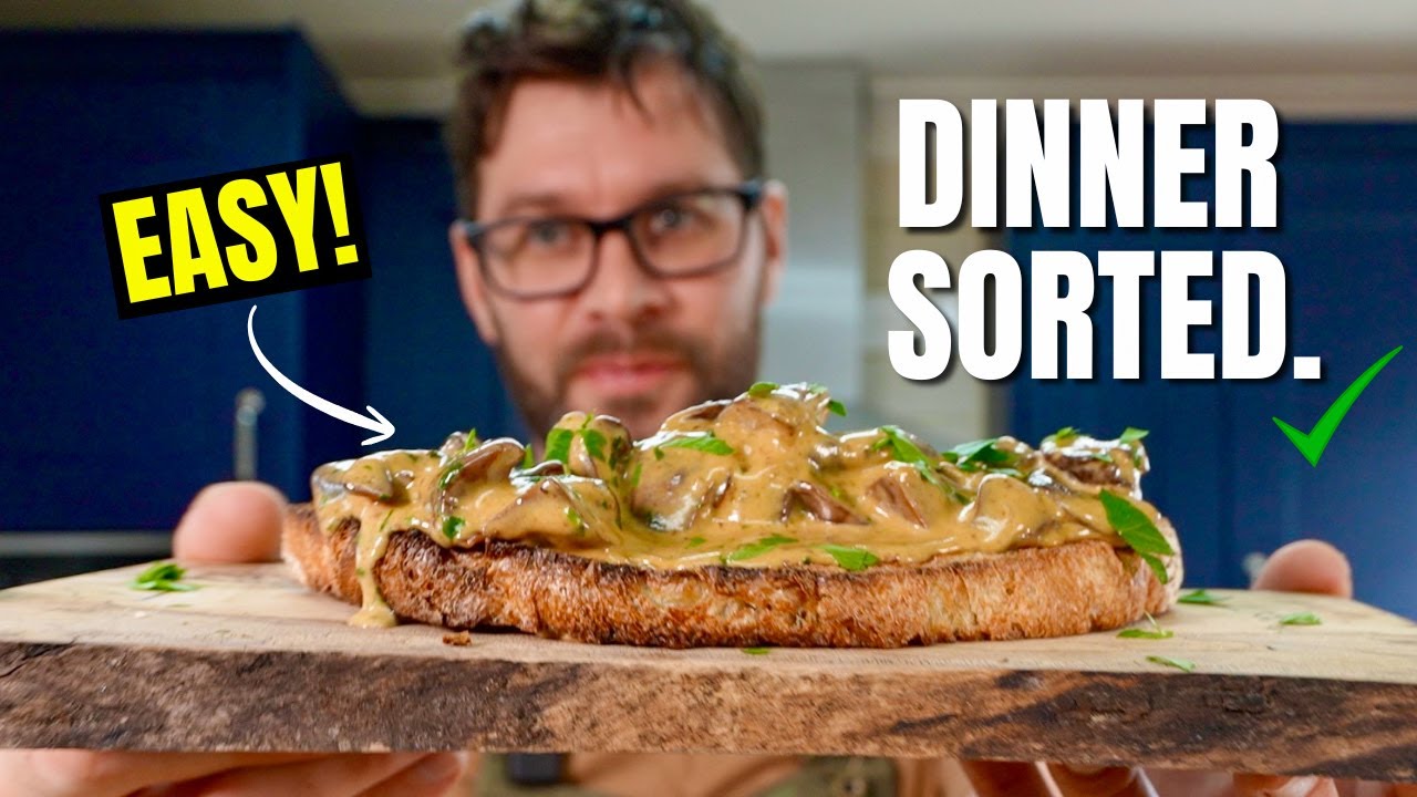 [Music] Today we’re making the ultimate comfort side dish. Creamy garlic mushrooms. Tender mushrooms coated in a rich, silky garlic cream sauce that comes together in just minutes. Perfect on toast over pasta or as a side dish. Let’s get started. For this recipe, you’re going to need 250 grams of mushrooms, some flat leaf parsley, a few cloves of garlic, a little bit of butter for frying, 300 ml of cream, single or double is fine, and a good bit of crusty bread. So, we’ll be starting this recipe with 250 g of mushrooms. Now, these can be any mushrooms. Any mushrooms you like, any of your choice. I’m going with chestnut mushrooms cuz they’re widely available. They’re cheap and they taste good as well. And first of all, we need to wash them. Now, you can wash them under water. It’s not really recommended because people say they absorb the water like a sponge, but I’ll leave that down to you. Some people prefer to wash them in water. Or you can just simply brush them like this and just brush away any of the dirt that you see. And then once they’re cleaned, you just want to go through them and cut off the ends of the stem. But you can leave the majority of the stem there. It’s just to get rid of the sort of dirty sort of tatty bits. And then we can break them up or chop them up. And for that, I’m just going to cut them into quarters. But if you want to make it even easier for yourself, you can simply just break them up with your hands as well and just have nice rustic random pieces of mushroom. And it really just adds to the dish. And now we can turn the attention to some garlic. And it’s really up to you how much you want to use. I mean, it depends how much you like garlic or how garlicky you want the dish to be. I’m going for a medium level. I’ll probably go for two cloves of garlic. And I’ll just break them off. And then I’m going to roughly chop them until they’re nice and small. So, I’m just going to start by thinly slicing them. And then I’ll run the knife through them using a cross cutting action to mince them up and get them nice and small. But feel free to put them through a garlic press or grate them on a microplane if you like. And then we’re going to do the same with a good handful of parsley. We’ll just tear off some of the leaves. and then roughly chop that up. Adding fresh herbs to a dish like this just really helps to elevate it and add an extra bit of flavor. And it’s up to you what what herbs you want to use really, but parsley goes classically with garlic mushrooms. So, it’s the obvious choice for me. So, now with the prep done, we can get on with the fun part, and that’s the cooking. So, I’ve got a pan over a medium high heat. We want it nice and hot. And then we’re going to chuck in about 20 or 30 g of butter. It’s really you can use as much or as little as you want. 20 30 g should be enough. And then as soon as it starts to form, we’re going to throw in the mushrooms. Give them a little toss so they’re nicely coated in the butter. And we’re going to cook them down until they’re nice and soft, but also lightly caramelized on the outside. So this should take between sort of 3 and 5 minutes. If you look at that, you can see a nice brown bit of caramelization, and that’s what’s going to create loads of flavor. If we let them cook too low, they’re going to steam and boil, and they’re not going to be very nice. And once they’re nicely browned off, you can add in the garlic. And then we can cook that out for 2 to 3 minutes. So, next we’re going to add in a splash of water. And what that’s going to do is just delaze the bottom of the pan and take some of that caramelization off, which is all flavor that needs to be in this dish. And we don’t want to miss out on it. Now, if you want to, if you’re making this as a starter for an evening meal, you could delaze with a a little bit of white wine, but this is more of a breakfasty lunch dish. I’m going to leave the wine out and I’m going with a splash of water instead. Season it with a good pinch of salt and grind of black pepper. And then we’re going to pour in 300 ml of double cream. Bring that to a boil and allow it to reduce down until the sauce thickens and coats the mushrooms nicely. So now with our sauce reducing over there on the stove, we can take our sourdough and cut a couple of nice big wedges. And then we’re going to place them under a hot grill to toast on each side. And now that our toast is ready, it’s hot. We can place it onto a serving board or a plate. And then there’s one final thing we need to do to our sauce, and that’s to throw in that handful of chopped parsley we did earlier on, just to elevate the dish. And now it’s ready to serve. Spoon the creamy mushrooms over the toast. And then finish with a little bit more fresh parsley. And just look at that. Beautiful creamy garlic mushrooms. So luxurious, so comforting, and beautifully tasty. And I can’t wait to try them. These look absolutely delicious. M. So creamy. Little bit of garlic coming through. Loads of flavor from that caramelization on the mushrooms. That’s a really essential step. Honestly, you’re going to love this one. Thanks for watching and I’ll see you in the next