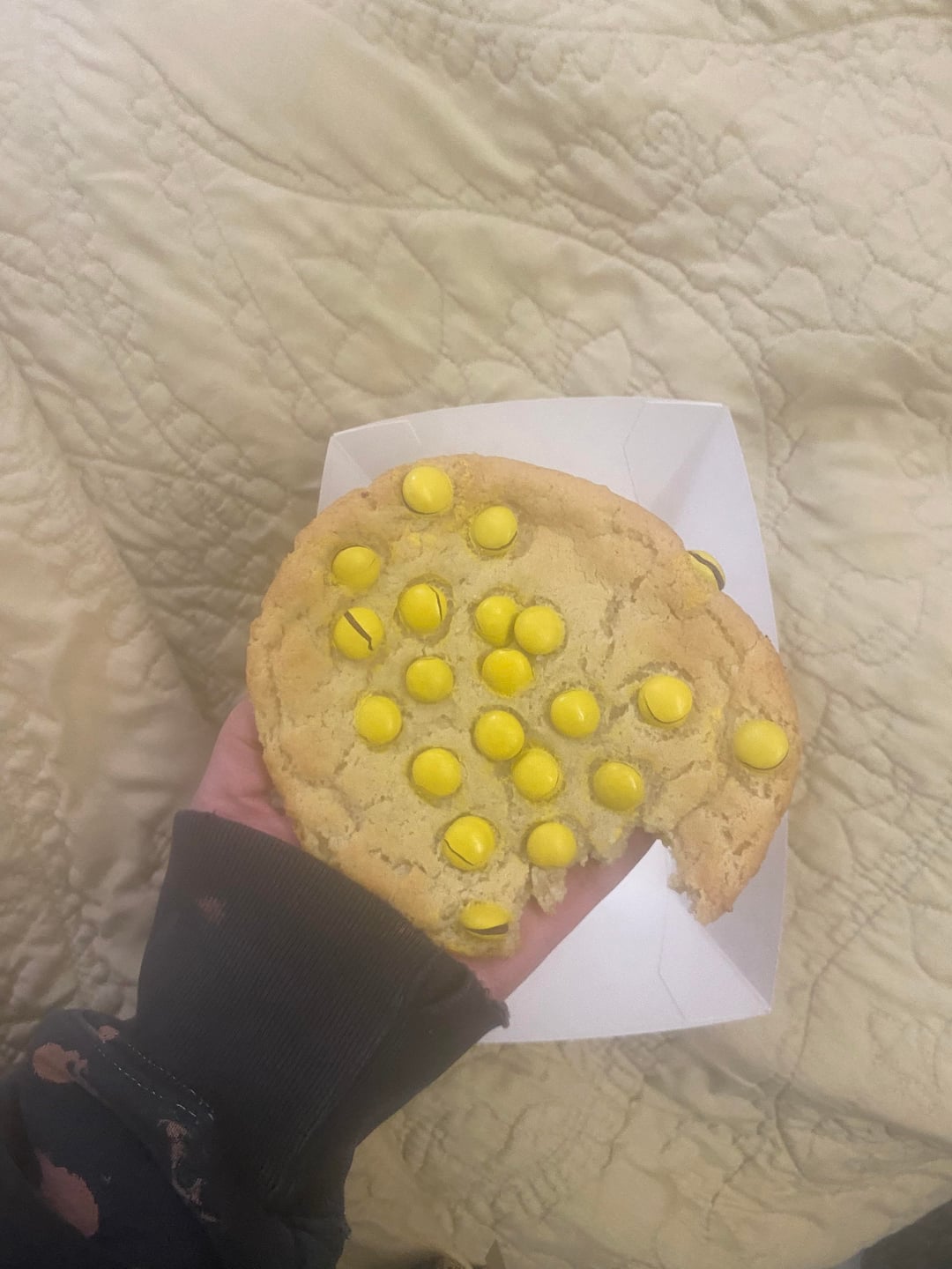 Does anyone have an idea of how much this M&m cookie would be? Second photo for size reference. i have it at 600 to be safe and i can eat it in quarters