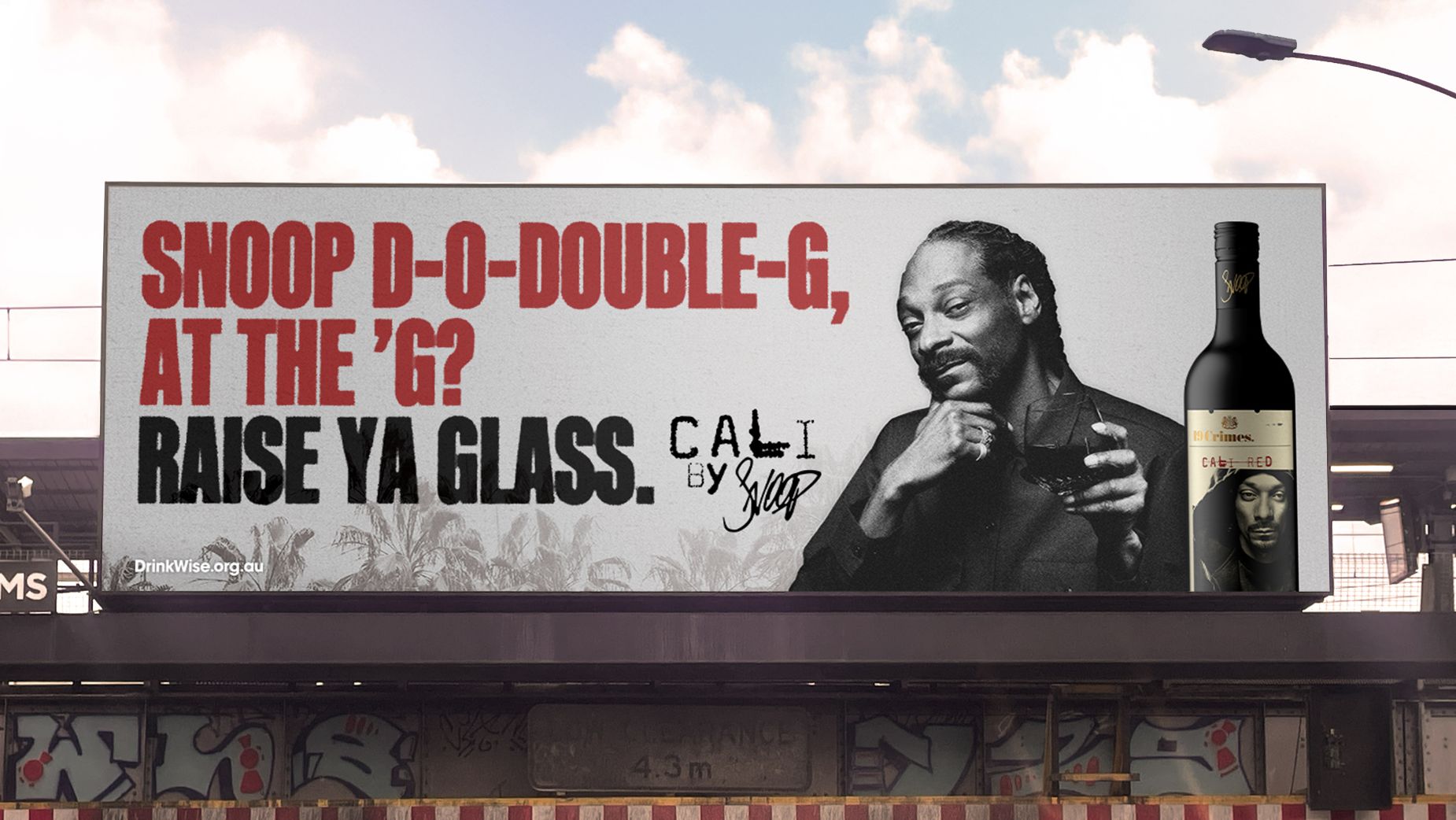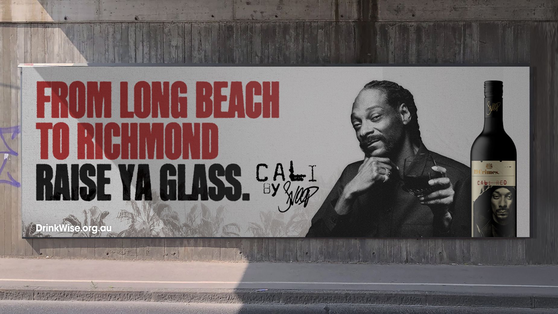 Snoop’s doppelgänger, Eric Finch, took to the streets of Melbourne in the lead up to the Grand Final to promote the wine brand, 19 Crimes X Cali by Snoop.