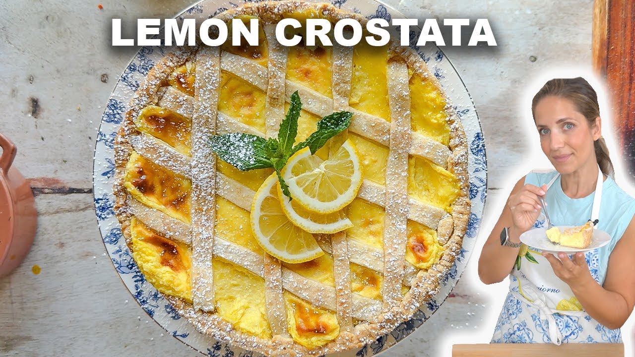 We’re making a gorgeous, delicious, really easy lemon ricotta rostata that you will absolutely love. This is the Italian version of a lemon tart, and it is sensational. Let me run you through what you’ll need to make the crust, which is like my go-to pie crust pretty much, and it works well every single time. Today, I’m making it in a food processor. You can also just mix this make this in a standing mixture with a petal attachment or by hand. I’m using the processor. Nice and easy. In there, I’m going to add my flour along with a pinch of salt. I’m also going to add some unsalted butter that’s really nice and cold still. And I’m going to go ahead and pulse this until the butter is distributed amongst ash. I also want to add the sugar. Two tablespoons of sugar until the butter is distributed really well throughout those dry ingredients. And the size kind of resembles a size of small peas. But keep an eye on it. You don’t want to take it too far. So, just pulse it. Not sure you can see that, but you see the butter is nice and small. And it’ll continue to break down a little bit as we add in the wet ingredients. And for that, you’re just going to need one whole egg. And you’re going to need some really cold ice water. Between 2 and 3 tablespoons. Usually, it’s sort of like 2 and 1/2 tablespoons. So, I’m going to go ahead and just hit it with about 2 and 1/2. And I’m going to pulse that until it comes together. But, it’s not going to come together perfectly because otherwise you’ll be overmixing it. So, just I’ll show you. You see how that still looks crumbly, but when you grab it and you pinch it together and it holds, that’s when you know you’re in the right spot. And you can actually still see all the cold pieces of butter, which are going to be the reason why your pie crust is really nice and flaky and gorgeous. Lightly dust your work surface because we’re going to pull this together by hand. I don’t want to add too much flour because I don’t want to have to add more moisture. And then all you do is you just gather it with your hands. You see all those little tiny tiny pieces? Those are all pieces of butter and they are going to be so delicious and flaky and gorgeous in your end result. And try to work quickly because you don’t want the warmth of your counter and most importantly the warmth of your hands to melt that butter. But look at that. came together into a nice little disc. That looks gorgeous. I can see the butter all throughout. And now what I’m going to do is I’m going to cover this, or I should say wrap this in some plastic wrap. And I’m going to pop it into the fridge for about 45 minutes. And in the meantime, we are going to make our custard, which is easy, simple, my favorite custard that I make all the time. And this time, it’s going to be for this lemon tart. Now we’re going to make the custard crema basticher. Okay. And it’s going to start off with some milk in a saucepan. We’re going to be using lemon a few different ways. We’re going to need the zest twice. The first time we’re going to take some of the zest about I would say the zest of a half of a lemon. I want just to peel. You see how there’s it’s just the peel, barely any white. That’s what I want. So I’m just going to take a few strips of that. I would say the about half, you know, lemon half lemons work. You know what I mean? the other lemon zest we’ll use in here, which I’ll show you. And now I’m going to just gently bring this to temperature and bring that to a simmer. I don’t want to boil it. I want it to come to a simmer. Now, what I have in this large bowl are some egg yolks. To the egg yolks, I’m going to go ahead and add in my granulated sugar. And then I’m going to take the remaining zest of the lemon. And then this time, I’m going to grate it. And I’m gonna grate it right in here with the lemon and with the egg yolks. And while that comes to a simmer, I’m just going to go ahead and whisk these together just until they become a little more light and pale in color. And then your thickener is a mixture of allpurpose flour, cornstarch, and a pinch of salt. And everything together is going to be phenomenal. You also need a little bit of lemon juice, a little bit of vanilla. I’m just going to babysit this. I want this to come to temperature gently. If you have a vanilla pod or a vanilla bean, it would be great to add it to your milk as it warms up so that it really infuses. I don’t have those. I’m just going to use my homemade vanilla extract. So, I’ll use that towards the end. Or you can also use a little bit of vanelina or vanilla powder if you are in Italy. I’m going to add in my thickener. And it’s going to get really thick. Okay, not super thick, but you know, but this is what you are looking for. So, I’m just going to go ahead and set this aside for now until that mixture of milk and the lemon is up to temperature. It’s almost there. Maybe another minute or so, but I don’t want to rush it because I don’t want that to come to a boil. I can see some small bubbles forming around the edges. is I’m just going to take some of this hot milk and I’m going to stream it and whisk it into the egg yolk mixtures. And the reason why we do that is so that when we do add this mixture to the pot, they don’t shock the eggs the egg yolks don’t get shocked and then curdle cuz we don’t want, you know, scrambled egg yolks cuz that I don’t know about you, but that does not sound pleasant. Doesn’t sound pleasant to me. Maybe it sounds pleasant to you, but it does not sound pleasant to me. And now that this is pretty much combined, I’m going to go ahead and add all of this to my pan. Now, this is going to thicken up almost immediately. But don’t let that fool you into thinking that your custard is ready, cuz watch what’s going to happen in just the next, I don’t know, 30 seconds or so. Watch how