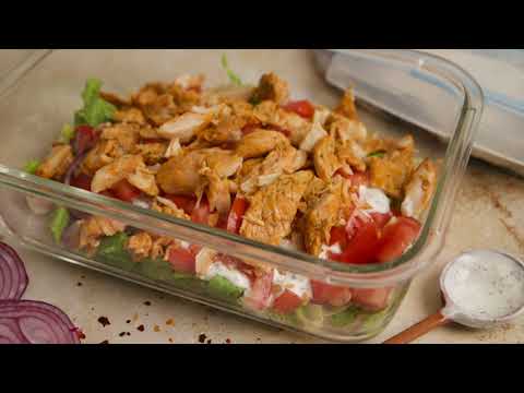 Esta combinación de pollo especiado con salsa tzatziki casera es ideal para tus planes al aire libre.